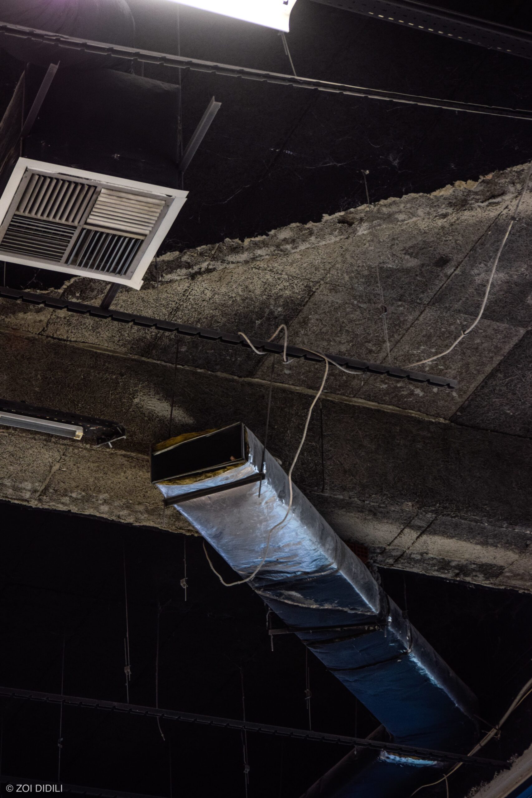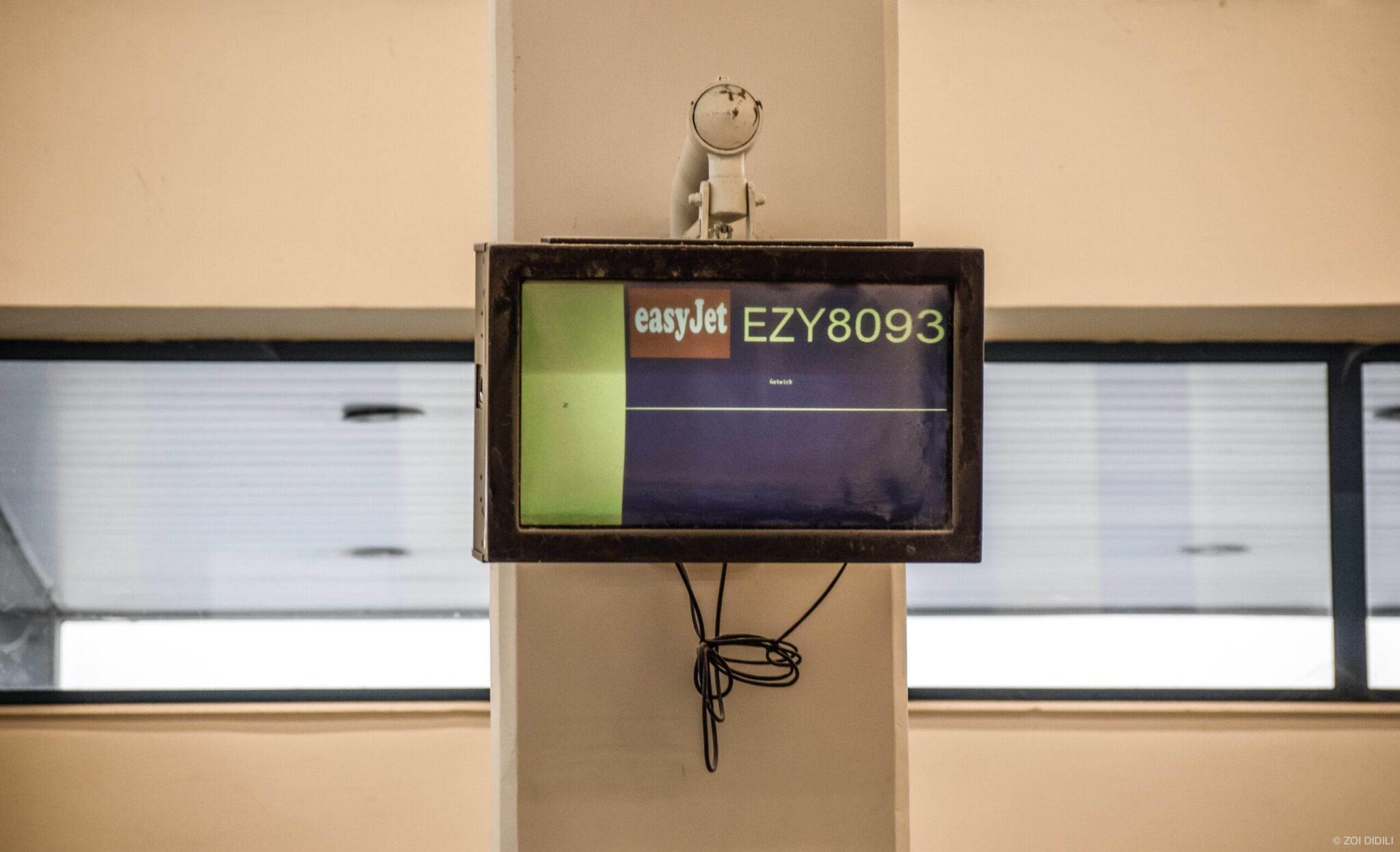 Ο χώρος παραλαβής των αποσκευών αποτελείται λιτά από έναν και μόνο ιμάντα, που σκεπάζεται από πλούσια στρώματα σκόνης. Με λίγες ματιές τριγύρω, ο χώρος είναι περιφραγμένος από λαμαρίνες, που σηματοδοτούν τα έργα εν εξελίξει, χωρίς ωστόσο να υπάρχει κάποια κίνηση. Τα έργα είναι τόσο στάσιμα όσο και η σκόνη πάνω σε κάθε αντικείμενο μέσα στον χώρο. Συστήματα εξαερισμού και καλώδια κρέμονται από την οροφή του χώρου υπό ανάπλαση, ο οποίος μισο-φωτίζεται ρομαντικά από χαλασμένες λάμπες.