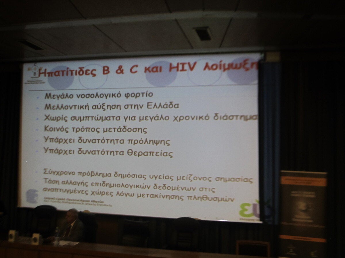 Η ηπατίτιδα C, δεν το συζητάμε καν, με τις σύγχρονες θεραπείες εκριζώνεται. Αλλά και στα υπόλοιπα νοσήματα, οι ασθενείς μπορούν να ζήσουν μια φυσιολογική ζωή, χωρίς τον κίνδυνο να είναι καν μεταδοτικοί. Ο HIV με θεραπεία που συνίσταται στη λήψη ενός χαπιού την ημέρα καθίσταται πρακτικά μη ανιχνεύσιμος και, άρα, δεν μεταδίδεται. Σχετικά με την ηπατίτιδα Β, τα τελευταία 20 χρόνια τα παιδιά εμβολιάζονται– αποτελεί αντικείμενο έρευνάς μας η εμβολιαστική κάλυψη των παιδιών την περίοδο της οικονομικής κρίσης, αν ο εμβολιασμός τους συνεχίζεται απρόσκοπτα ή υπάρχει ανακοπή του. Πρέπει να εμβολιαστούν οι ευάλωτοι πληθυσμοί, όπως προείπα, οι τσιγγάνοι και οι μετανάστες και οι ομάδες υψηλού κινδύνου του γενικού πληθυσμού. Αν ο ασθενής της ηπατίτιδας Β κάνει θεραπεία, όπως είπε και ο κύριος Παπαθεοδωρίδης, τα αποτελέσματα είναι εκπληκτικά, ακόμα και στο ήπαρ ασθενών με αρχή κίρρωσης. Δεν είναι πλήρως ιάσιμη αλλά μπορείς να έχεις μια φυσιολογική ζωή.