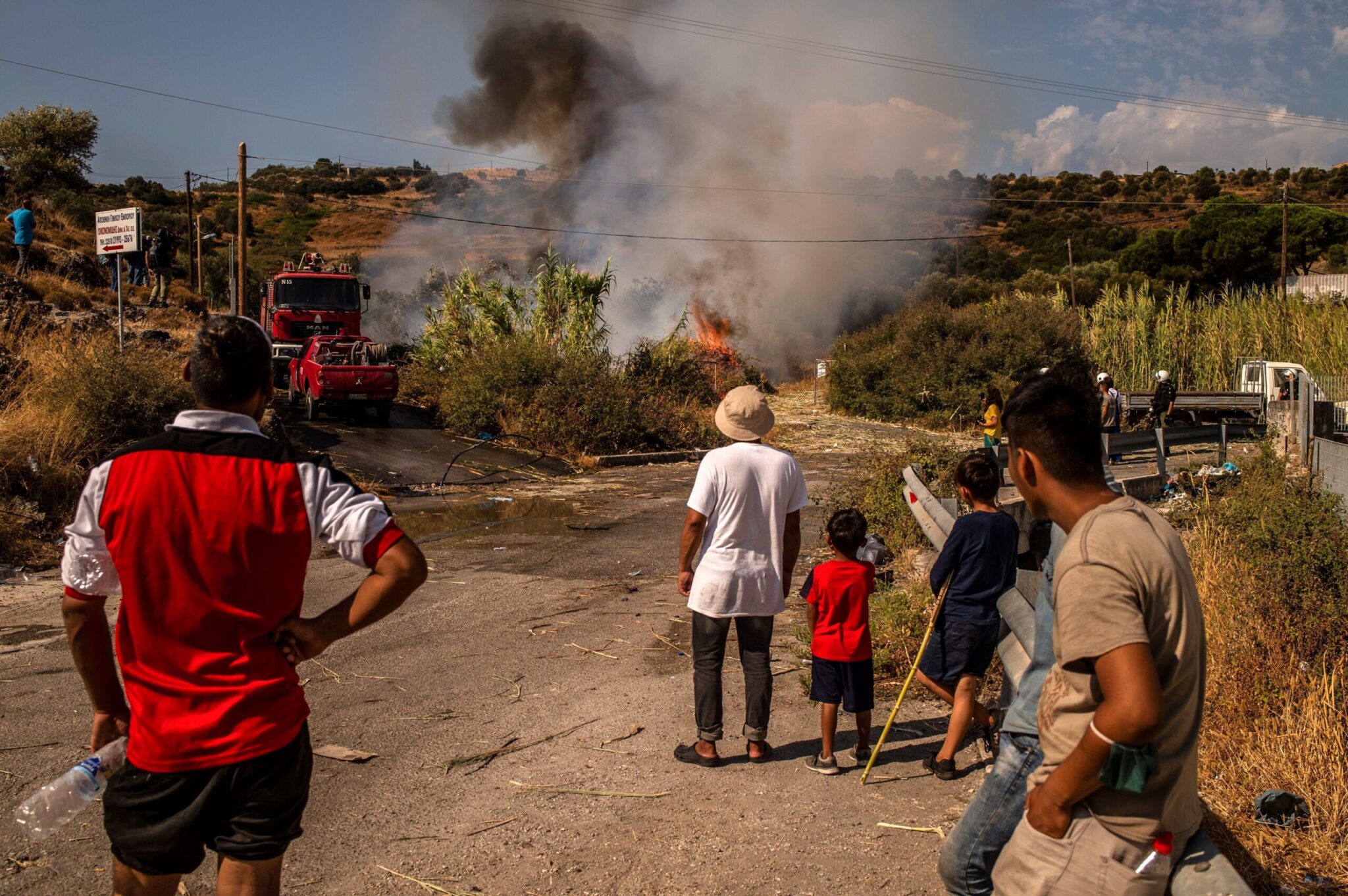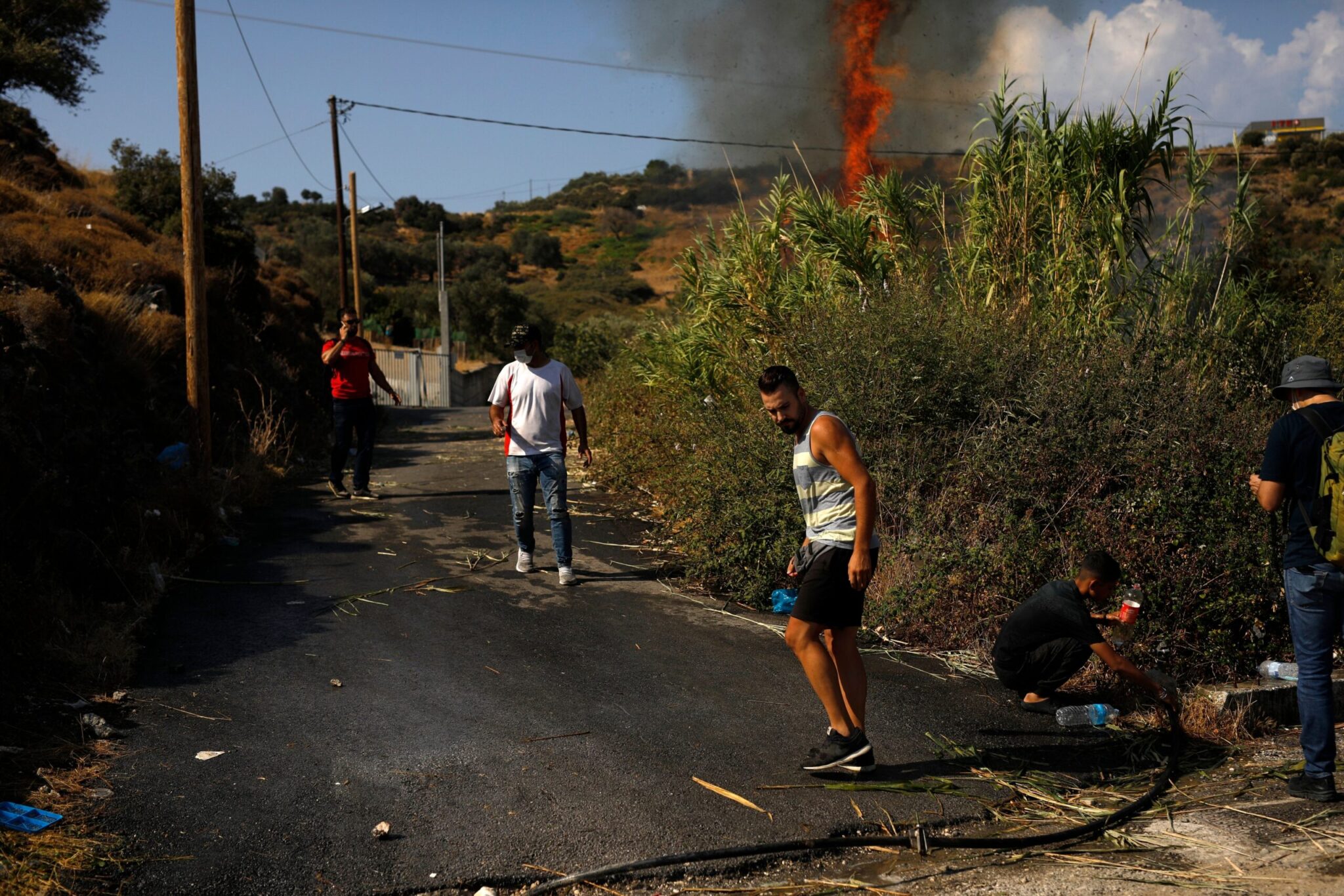 Νωρίτερα, περίπου στις 10.30 το πρωί, είχε προκληθεί νέα φωτιά σε καλαμιώνα δίπλα σχεδόν στο μπλόκο της Αστυνομίας, που δεν επέτρεπε στους διαδηλωτές να κινηθούν προς την πόλη. Η φωτιά σβήστηκε με ρίψεις νερού από αεροπλάνα, αφού η πρόσβαση πυροσβεστικών οχημάτων δεν ήταν δυνατή.
