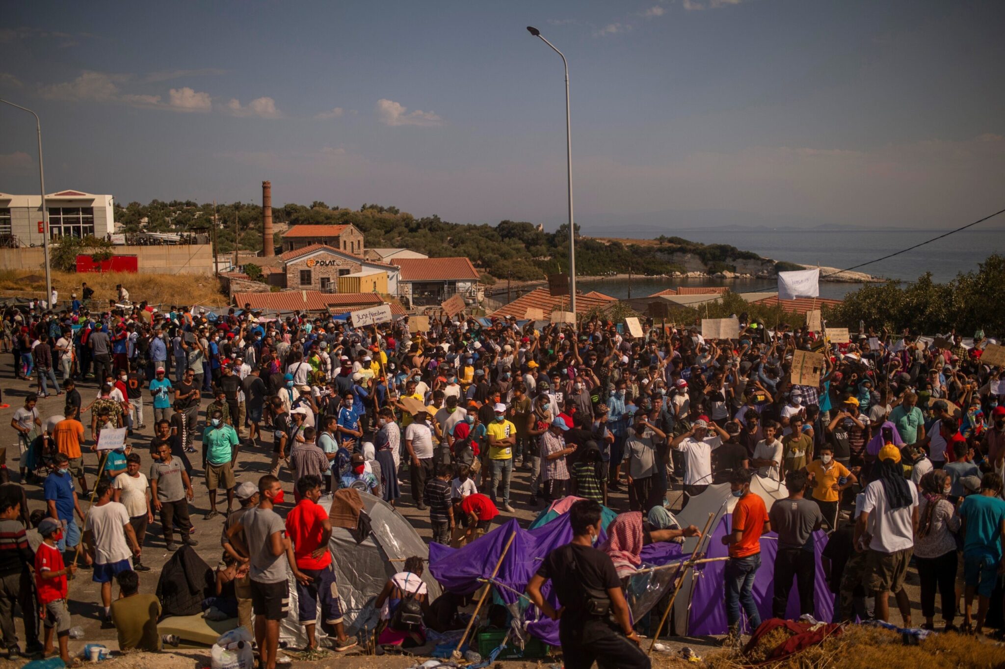 Οπως μετέδωσε η τοπική ιστοσελίδα, lesvospost.gr, ξαφνικά και ενώ βρισκόταν σε εξέλιξη ειρηνική διαδήλωση αιτούντων άσυλο που έχουν μείνει άστεγοι μετά την καταστροφική φωτιά στη Μόρια, μερίδα από αυτούς ξεκίνησε να πετάει αντικείμενα και πέτρες προς τις δυνάμεις των ΜΑΤ, οι οποίες απάντησαν με ρίψη χημικών.