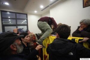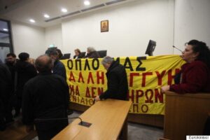 Το τεταμένο κλίμα που επικρατούσε στην αίθουσα προκάλεσε ένταση και αναστάτωση στους συμβολαιογράφους που φυγαδεύτηκαν προς αποτροπή σοβαρότερων επεισοδίων.