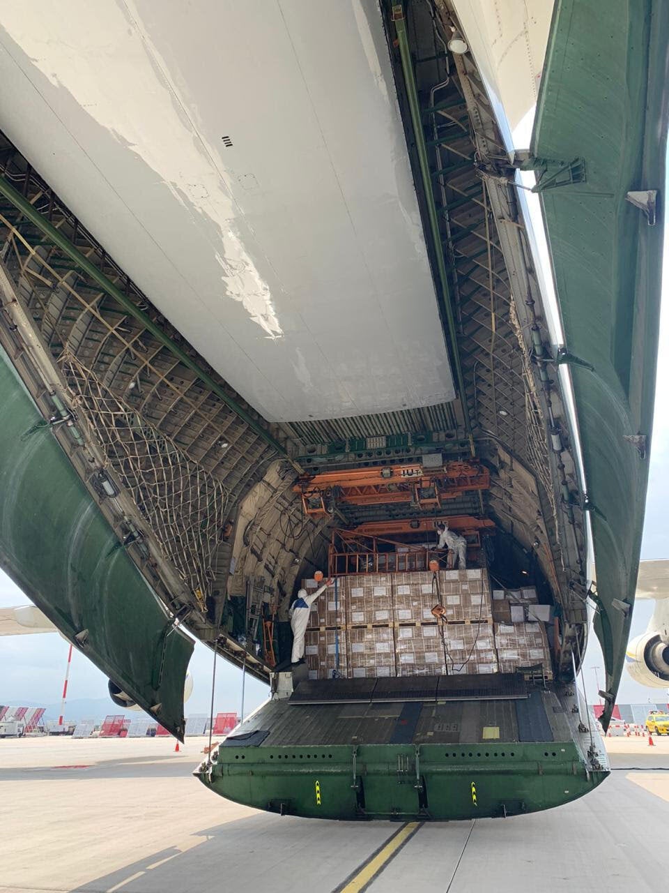 Ειδικά ναυλωμένο μεταφορικό αεροσκάφος Antonov μετέφερε σήμερα στο Αεροδρόμιο Ελευθέριος Βενιζέλος φορτίο 80 τόνων υγειονομικού υλικού από το Τιαντζίν της Κίνας για λογαριασμό του Υπουργείου Υγείας.