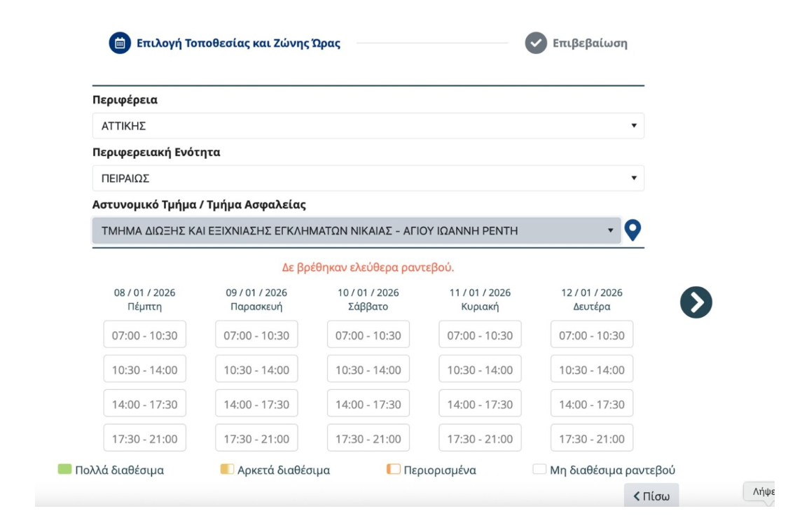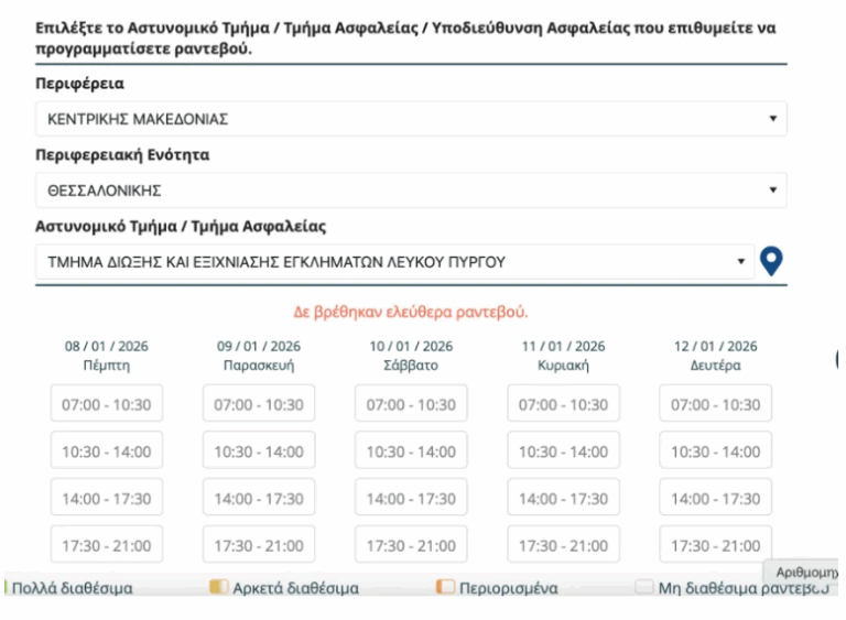 Δυσεύρετα είναι τα ραντεβού για έκδοση νέων ταυτοτήτων σε Αθήνα και Θεσσαλονίκη, καθώς στη σχετική πλατφόρμα δεν φαίνονται να υπάρχουν καθόλου διαθέσιμα μέχρι… αρχές Απριλίου.