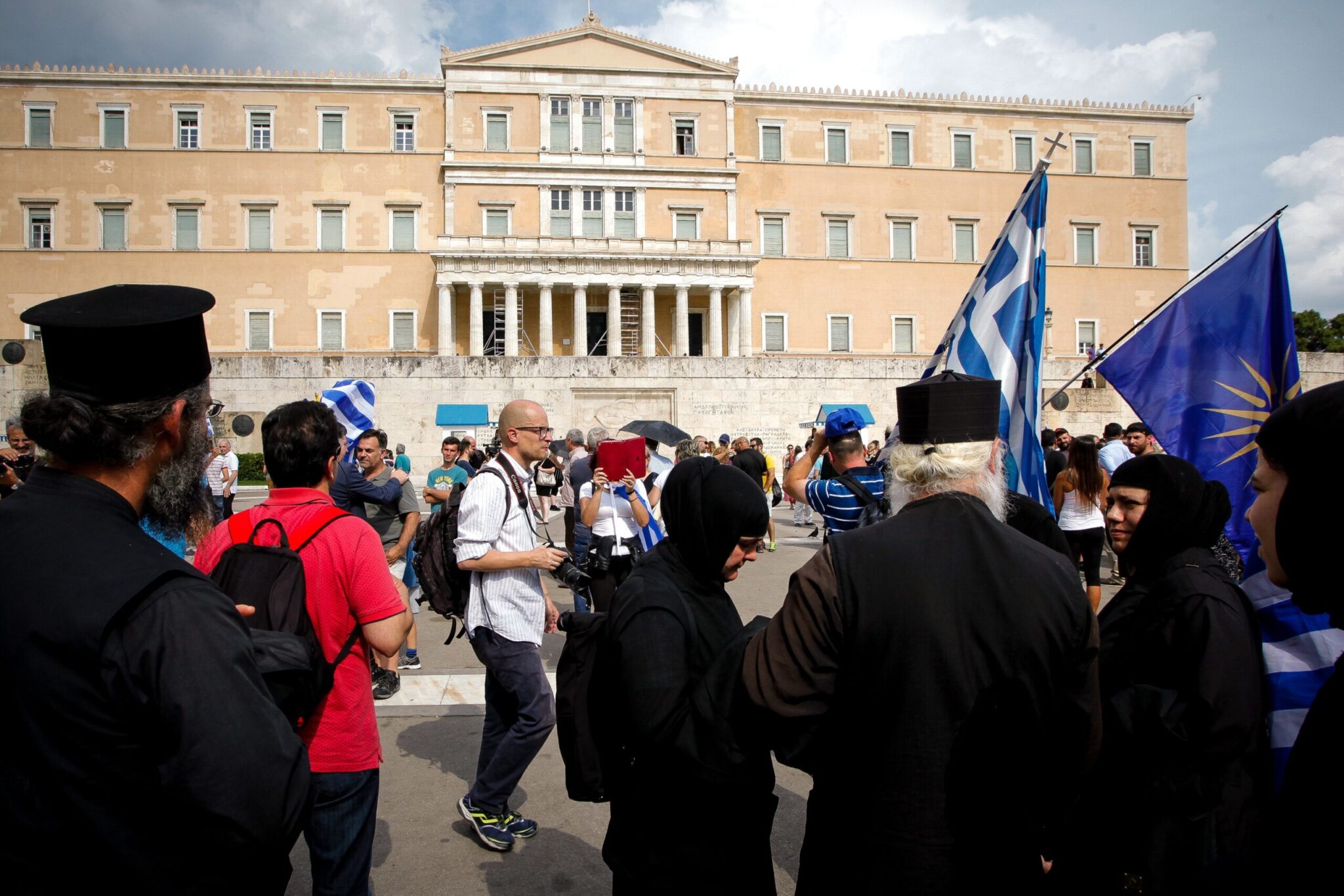 Επεισόδια σημειώθηκαν στο Σύνταγμα κατά τη διάρκεια του συλλαλητηρίου κατά της συμφωνίας Ελλάδας- Σκοπίων για την ονομασία της ΠΓΔΜ. Διαδηλωτές κρατώντας ελληνικές σημαίες και σημαίες με τον Ήλιο της Βεργίνας είχαν από νωρίς συγκεντρωθεί στην πλατεία Συντάγματος εκφράζοντας την αντίθεσή τους στη συμφωνία.