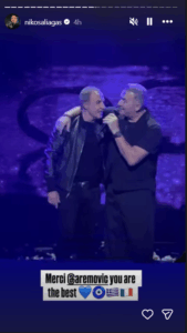 Ο παρουσιαστής μοιράστηκε στα social media στιγμιότυπα από τη βραδιά, εκφράζοντας την αγάπη του για τη νέα επιτυχία του τραγουδιστή «Δευτέρα», ενώ ξεχώρισε το ντουέτο που παρουσίασαν σε αγγλικά και γαλλικά.