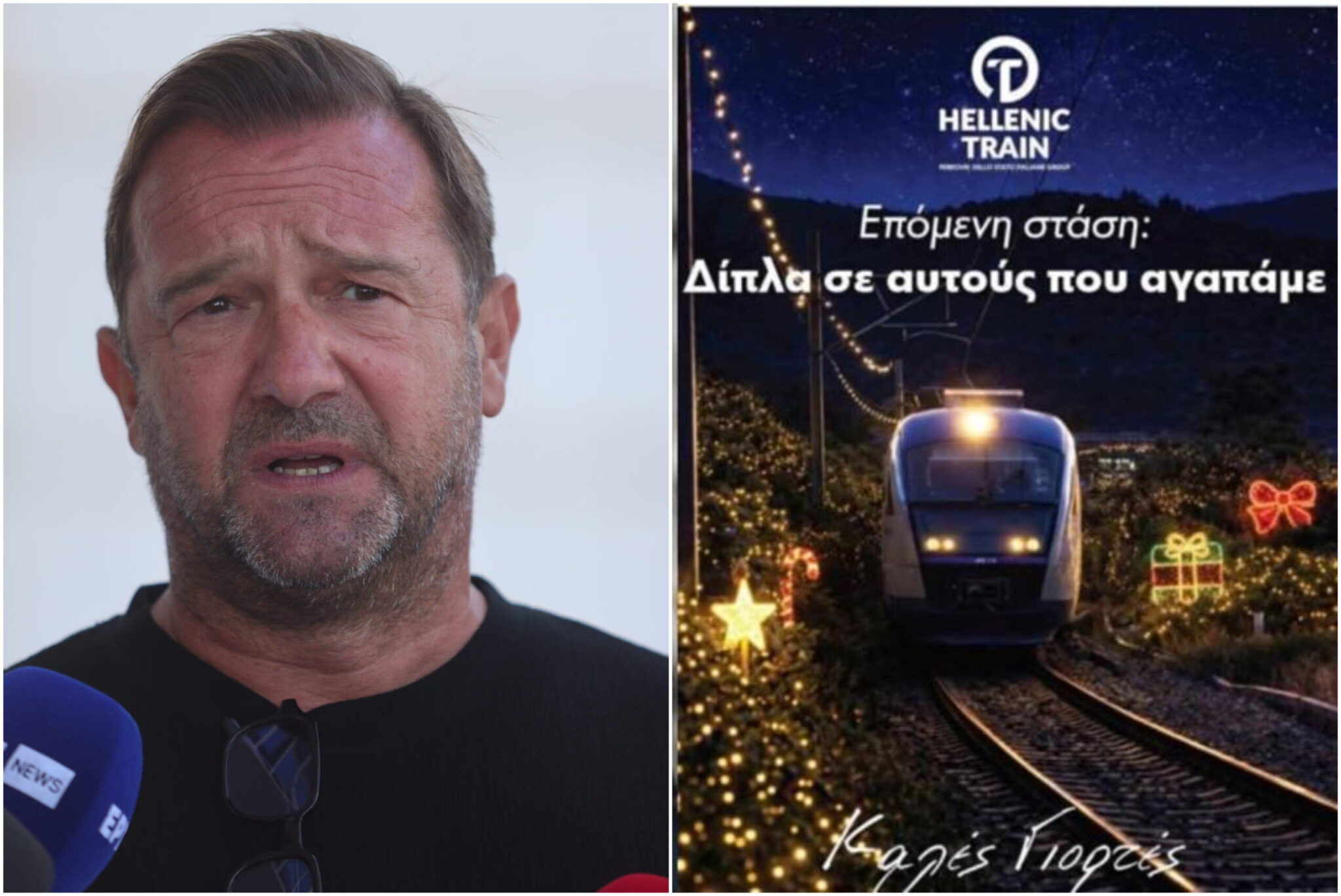Η εορταστική κάρτα της Hellenic Train με το μήνυμα «Επόμενη στάση: Δίπλα σε αυτούς που αγαπάμε» προκάλεσε έντονες αντιδράσεις. Ο Νίκος Πλακιάς, που έχασε τις δύο κόρες του και την ανιψιά του στην τραγωδία των Τεμπών, εξέφρασε οργή και πικρία.