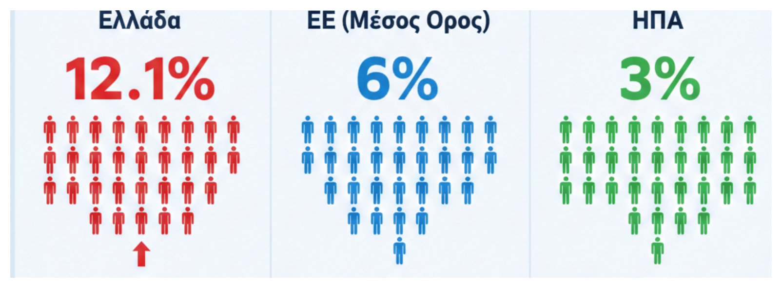 | Ελλάδα | ~12,1% | Ο υψηλότερος στην ΕΕ. Στις ΜΕΘ το ποσοστό αγγίζει το 45-50%. |