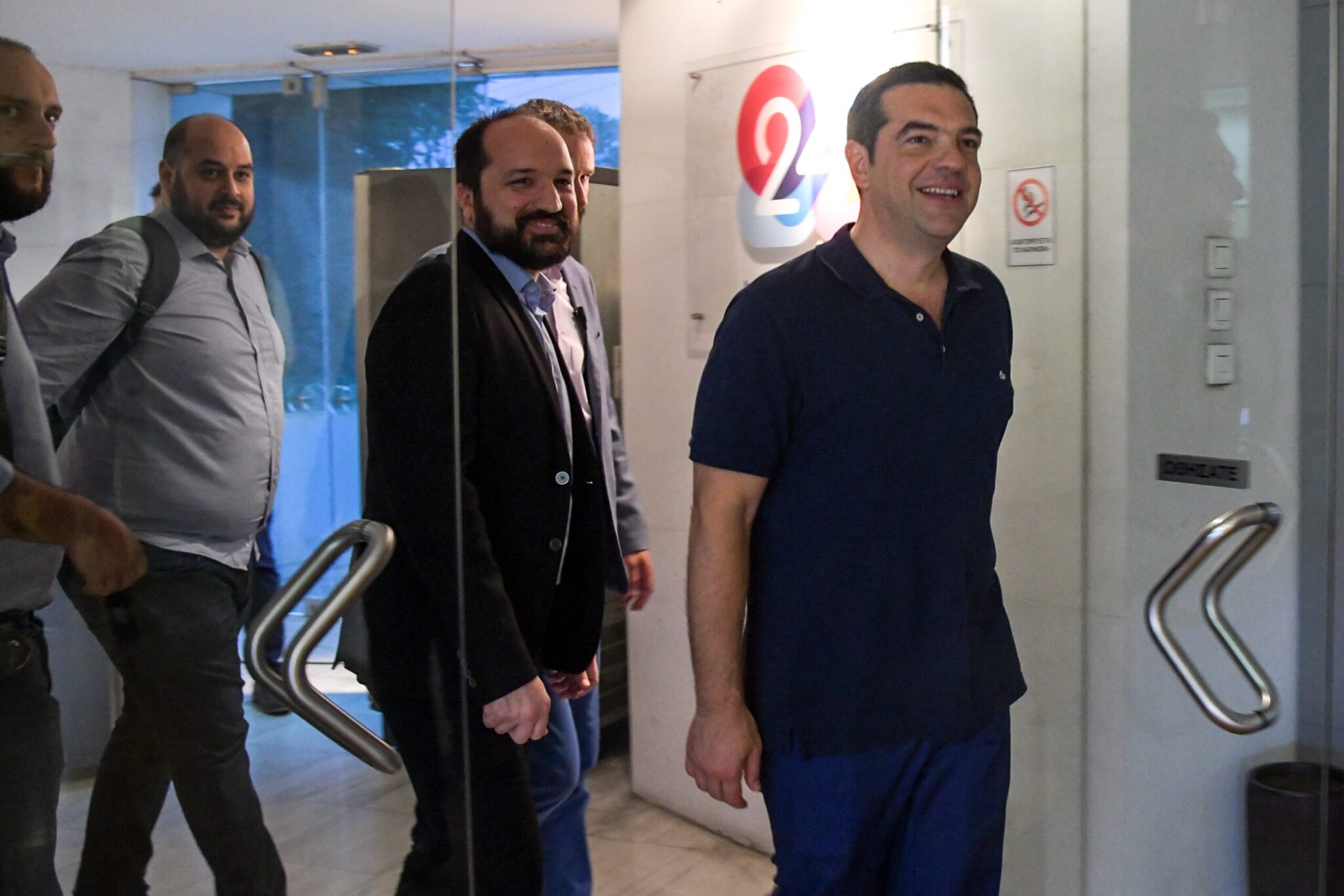 Τον πρωθυπουργό υποδέχτηκε ο ιδιοκτήτης και πρόεδρος της 24MEDIA Δημήτρης Μάρης, ο CEO της 24MEDIA Νικόλας Πεφάνης, ο Διευθυντής Ειδήσεων & Ενημέρωσης Μάνος Χωριανόπουλος, ο Διευθυντής Αθλητικού Περιεχομένου Δημήτρης Κωνσταντινίδης και ο Διευθυντής του Sport 24 Radio, Παντελής Διαμαντόπουλος.