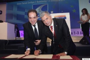 Το Σύμφωνο Συνεργασίας υπέγραψαν κατά τη διάρκεια του Ετήσιου Τακτικού Συνεδρίου της Κ.Ε.Δ.Ε., στο Συνεδριακό Κέντρο «Ιωάννης Βελλίδης» στη Θεσσαλονίκη, ο Αρχιεπίσκοπος κ. Ιερώνυμος με τον Πρόεδρο της Κ.Ε.Δ.Ε. Γεώργιο Πατούλη και τον Γενικό Διευθυντή της «Αποστολής» Κωνσταντίνο Δήμτσα.