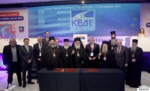 Στρατηγικής σημασίας Σύμφωνο Συνεργασίας, υπεγράφη χθες, την Πέμπτη, μεταξύ της Κεντρικής Ένωσης Δήμων Ελλάδος (Κ.Ε.Δ.Ε.) και του Φιλανθρωπικού Οργανισμού της Ιεράς Αρχιεπισκοπής Αθηνών «ΑΠΟΣΤΟΛΗ» παρουσία του Μακαριωτάτου Αρχιεπισκόπου Αθηνών και πάσης Ελλάδος κ.κ. Ιερωνύμου Β’.