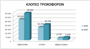 Ως προς τις κλοπές τροχοφόρων που τελέστηκαν το 2017, παρατηρούνται οι εξής διαφοροποιήσεις: