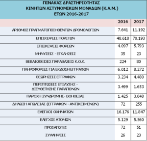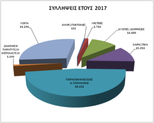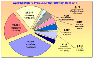 Πιο αναλυτικά η δραστηριότητα και το σύνολο των παρεμβάσεων των «Αστυνομικών της Γειτονιάς» στην Επικράτεια κατά το έτος 2017 αποτυπώνεται ως εξής:
