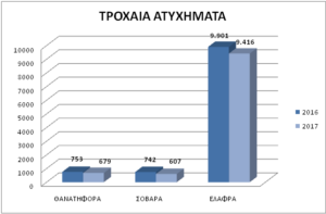9.416 ελαφρά ατυχήματα έναντι 9.901 το 2016