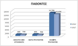12.070 ελαφρά τραυματίες έναντι 12.798 το 2016 (728 λιγότεροι)