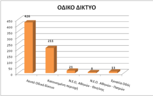 Από τα θανατηφόρα ατυχήματα (21) συνέβησαν στη Ν.Ε.Ο. Αθηνών – Θεσσαλονίκης, (8) στη Ν.Ε.Ο. Αθηνών – Πατρών, (13) στην Εγνατία Οδό, (211) στις κατοικημένες περιοχές και (426) στο λοιπό οδικό δίκτυο.