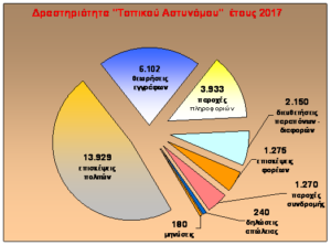 Το έτος 2017 οι «Τοπικοί Αστυνόμοι», πραγματοποίησαν συνολικά (29.079) δράσεις και παρεμβάσεις, οι οποίες περιλάμβαναν επισκέψεις πολιτών και Φορέων, θεωρήσεις εγγράφων, παροχή πληροφοριών, διευθέτηση παραπόνων – διαφορών, μηνύσεις κ.α.