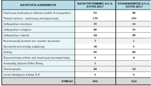 Επίσης, το 2017 σε σχέση με την τελική αποτίμηση του 2016, σε όλη την επικράτεια καταγράφηκαν: