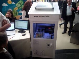 “SMILEYBIN“: Αυτός είναι ο κάδος ανακύκλωσης που κατασκευάσαμε και ο οποίος εντυπωσίασε τον δήμαρχο Θεσσαλονίκης κ. Γιάννη Μπουτάρη κατα την επίσκεψή του στην Εμπορική Έκθεση της μαθητικής “Εικονικής Επιχείρησης” που έγινε στη Θεσσαλονίκη στις 8 Απριλίου. Ο κ. Μπουτάρης μας είπε ότι θέλει να εγκαταστήσει 10 τέτοιους κάδους σε φωτισμένα σημεία της πόλης για να παρακινήσει τους πολίτες να κάνουν ανακύκλωση. Επίσης, ο Έλληνας πρέσβης στο Κουβέϊτ, κ. Θεόδωρος Θεοδώρου που μας είδε στην ΕΡΤ1 μας τηλεφώνησε και μας είπε πως θέλει να παρουσιάσουμε το προϊόν μας για να υλοποιηθεί στο Κουβέϊτ!