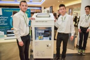 Χάρη στην πολύτιμη αρωγή του ηλεκτρολόγου μηχανικού ΤΕ κ. Μότσια Δημήτρη, του υπευθύνου της εταιρείας συστημάτων αλουμινίου AVRALCO κ. Αβραμίδη Βασίλη και στην αμέριστη συμπαράσταση του πρύτανη του ΤΕΙ Δυτ. Μακεδονίας Δρ. Ασημακόπουλου Νικολάου, του Δρ. Σόρμα Αστερίου, καθηγητή Εφαρμογών του Τμήματος Διοίκησης Επιχειρήσεων καταφέραμε να κατασκευάσουμε τον κάδο και να τον παρουσιάσουμε στις 8 Απριλίου στην Εμπορική Έκθεση Καινοτομίας και Επιχειρηματικότητας του ΣΕΝ/JA GREECE, στο Mediaterranean Cosmos.