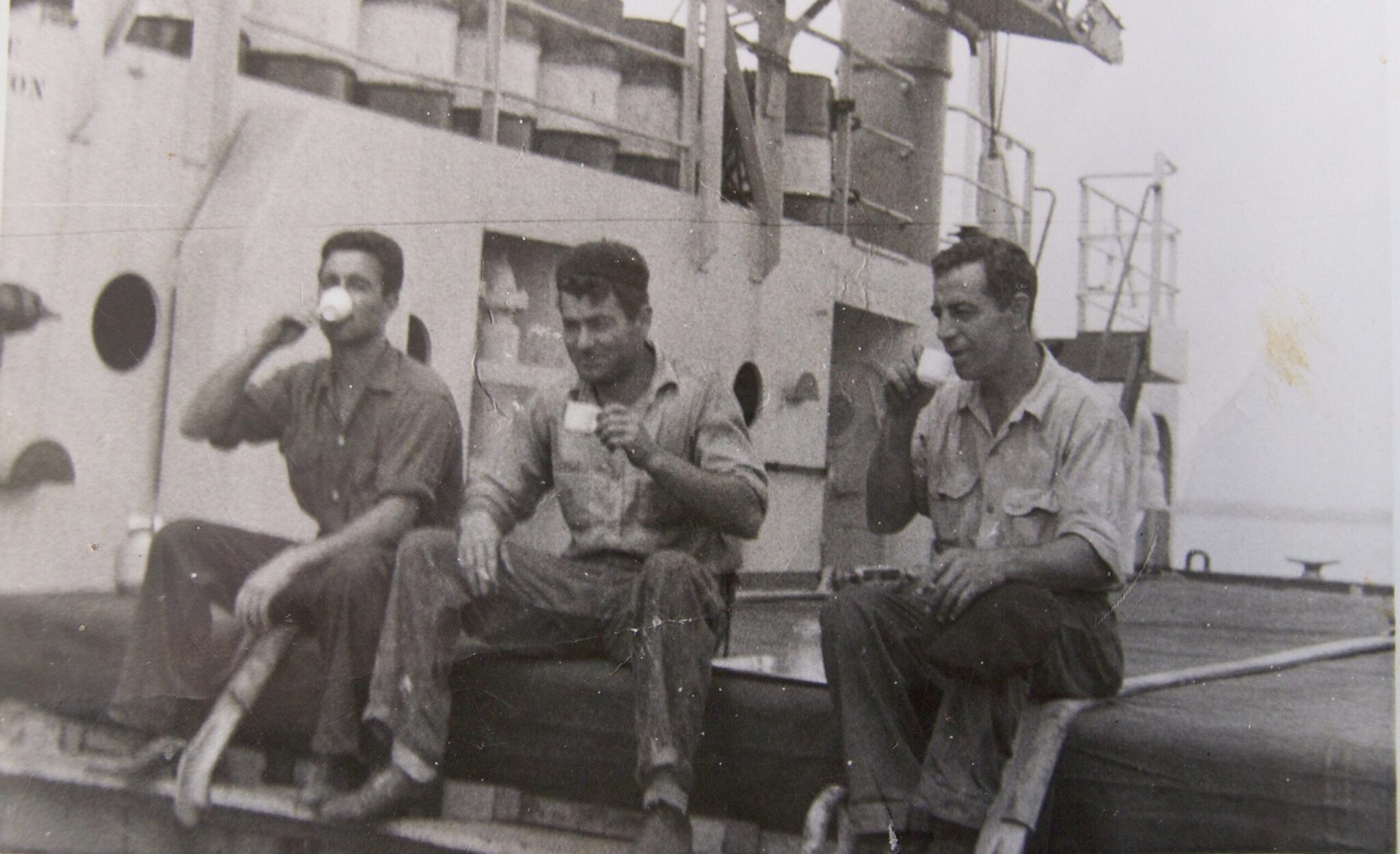 Μια στάση για τσιγάρο και μια γουλιά καφέ. Στο κέντρο ο λοστρόμος, ο Μανούσος…