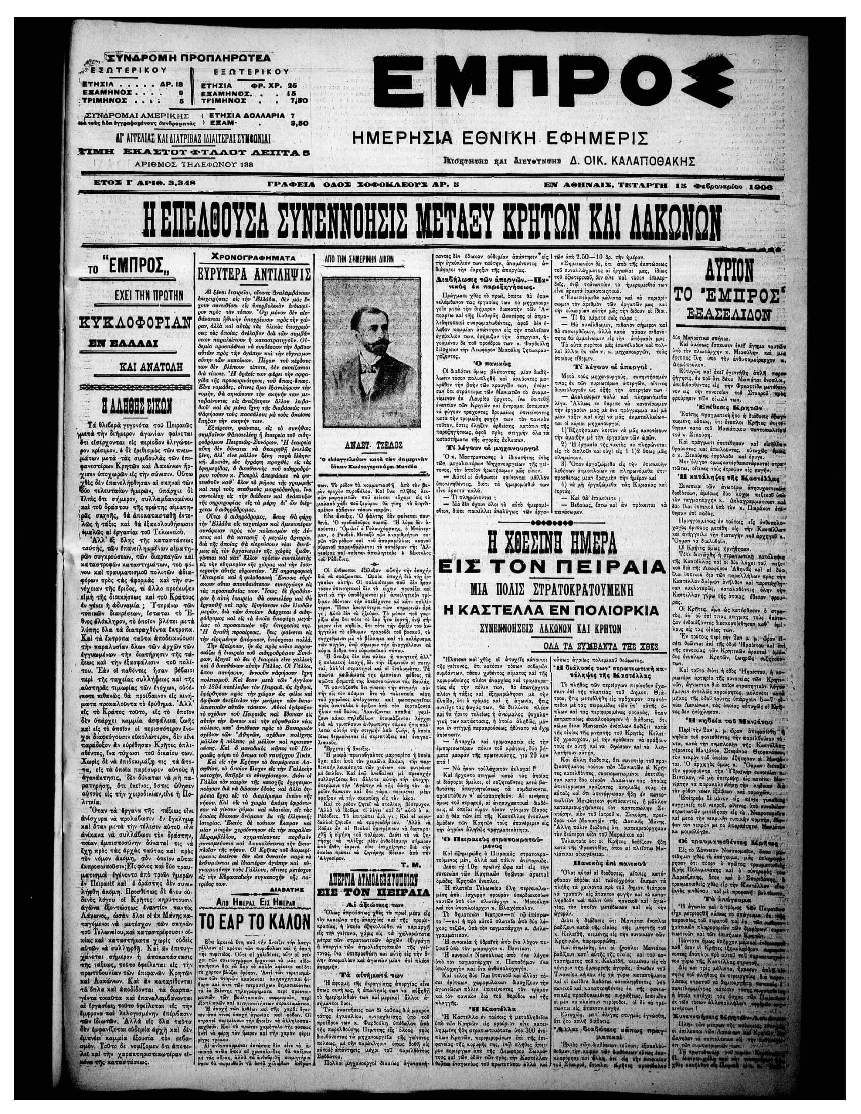 «Η ΚΑΣΤΕΛΛΑ ΕΝ ΠΟΛΙΟΡΚΙΑ- ΠΕΙΡΑΙΑΣ ΜΙΑ ΠΟΛΗ ΣΤΡΑΤΟΚΡΑΤΟΥΜΕΝΗ», αναφέρει η εφημερίδα «ΕΜΠΡΟΣ» στις 14 Φεβρουαρίου και ενημερώνει ότι την προηγουμένη «συνήλθε υπουργικόν συμβούλιον το οποίο συνεζήτησεν επί των σκηνών του Πειραιώς και έλαβε γνώσιν των εκείθεν διαβιβασθεισών πληροφοριών περί κατευνασμού των πνευμάτων των αντιμαχομένων μερών. Ελήφθησαν δε αποφάσεις σχετικώς προς τα διαταγάς αι οποίαι εδόθησαν προς τον αρχηγόν του στρατού της πόλεως όπως δείξουν μετριοπάθειαν οι άνδρες και αποφύγουν κατά το δυνατόν την σύγκρουσην».