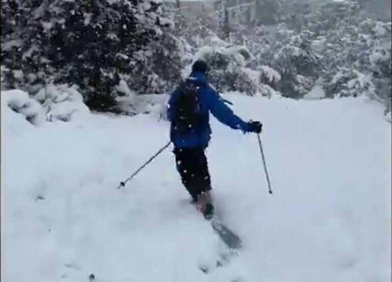 Έχοντας εφοδιαστεί με τον απαραίτητο εξοπλισμό και τα πέδιλα, ο Νορβηγός πρέσβης έκανε σκι στη Φιλοθέη κατεβαίνοντας τον χιονισμένο λόφο της.