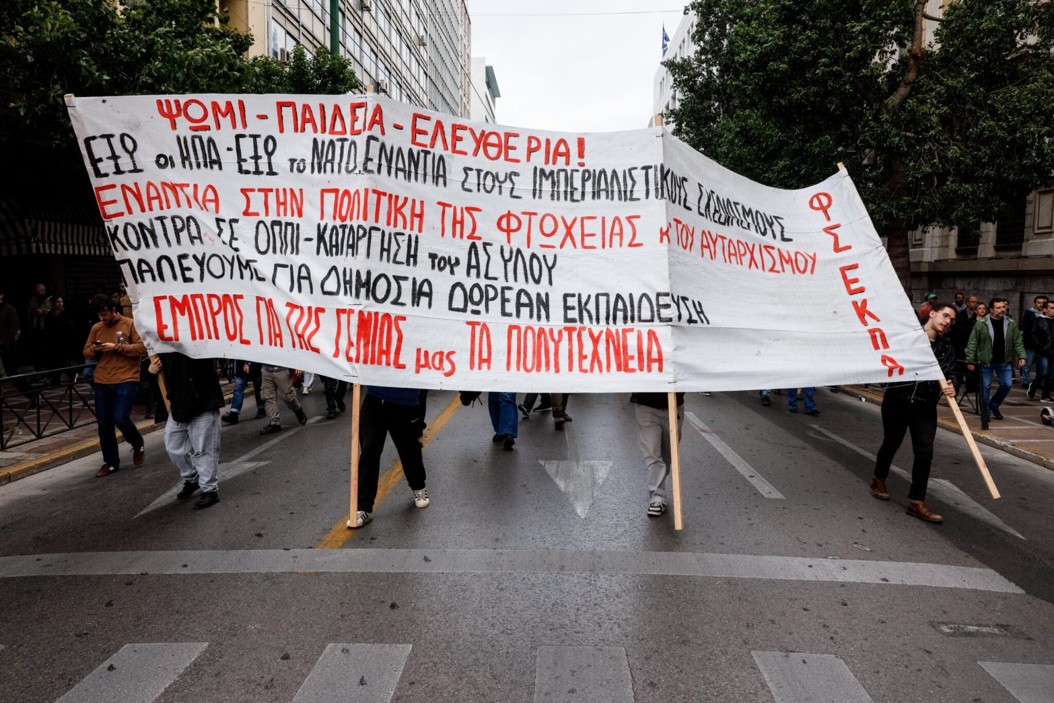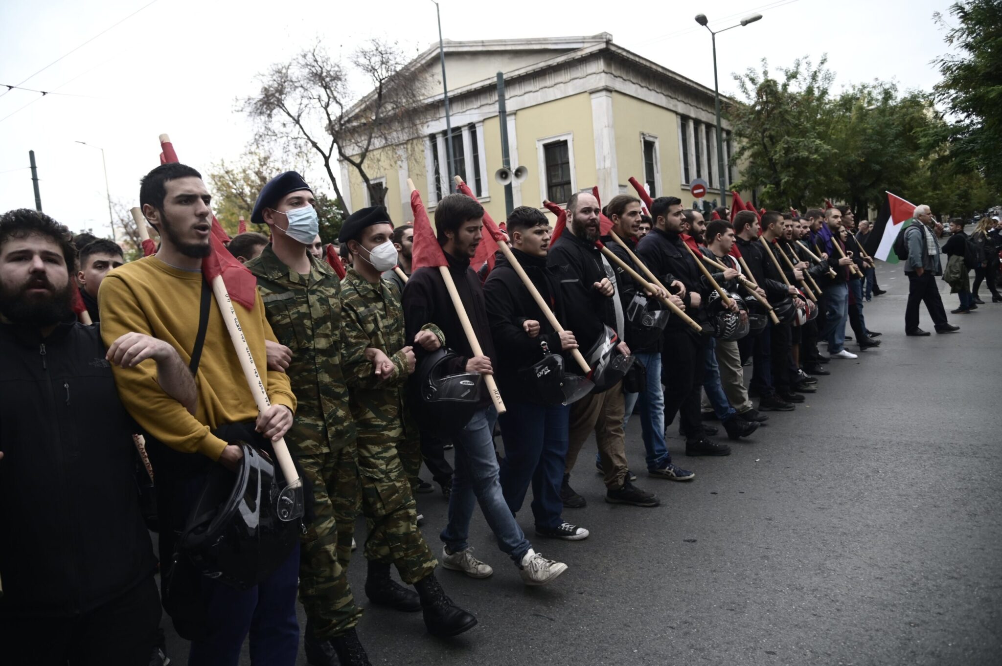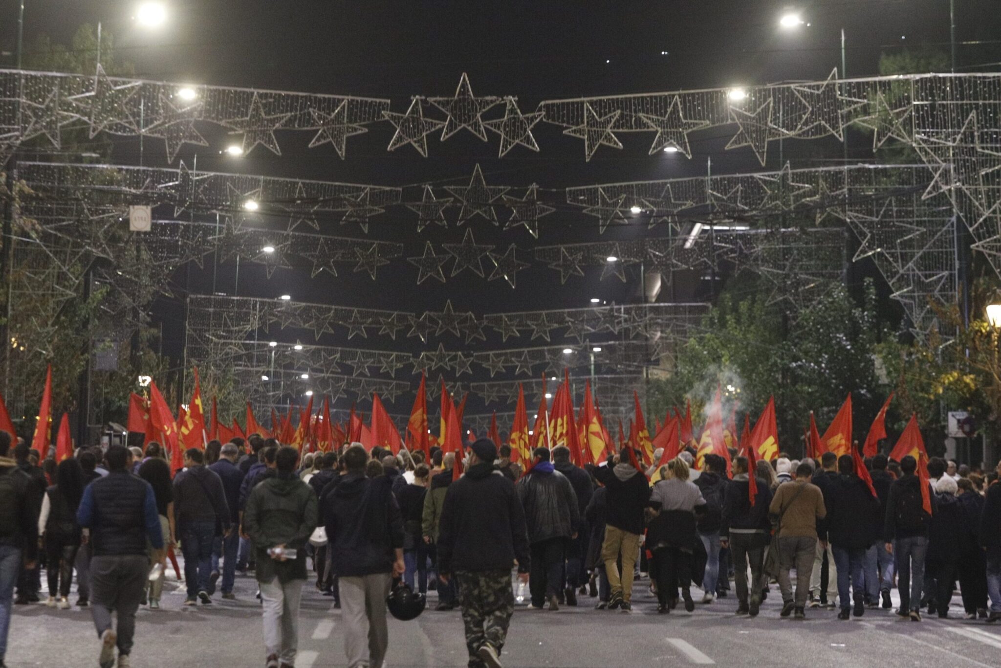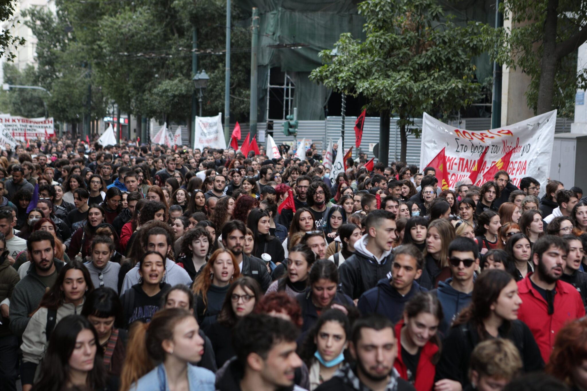 Νωρίτερα, όταν έκλεισαν οι πύλες του Πολυτεχνείου, φοιτητικοί σύλλογοι πραγματοποίησαν προσυγκέντρωση και με πορεία κατευθύνθηκαν στην πλατεία Κλαυθμώνος περιμένοντας να ξεκινήσει ο κύριος όγκος της διαδήλωσης.