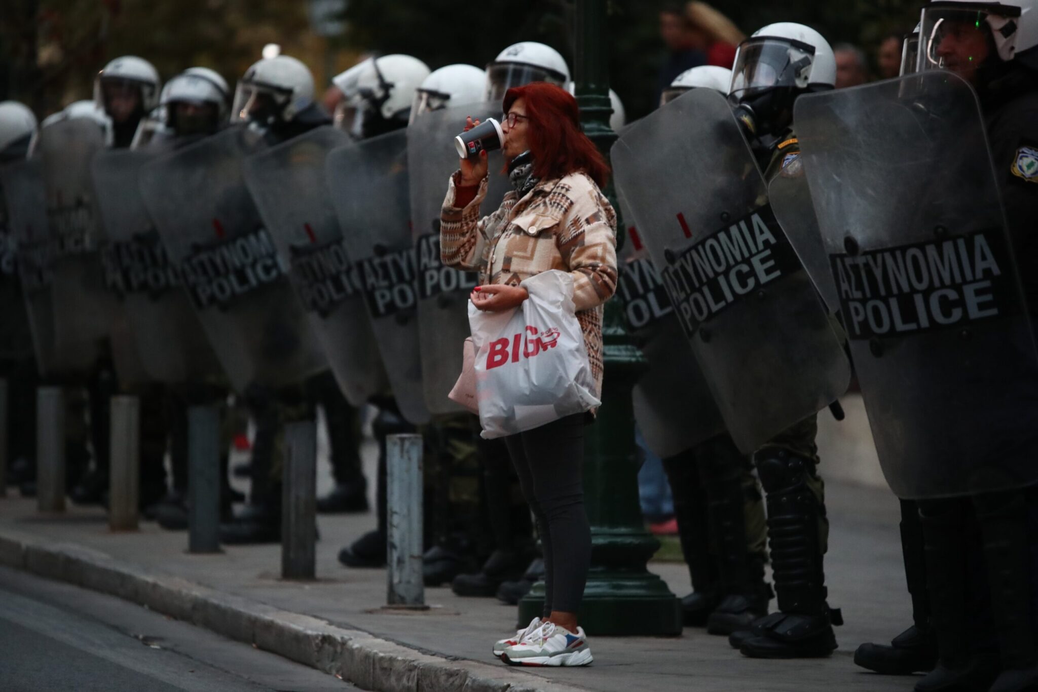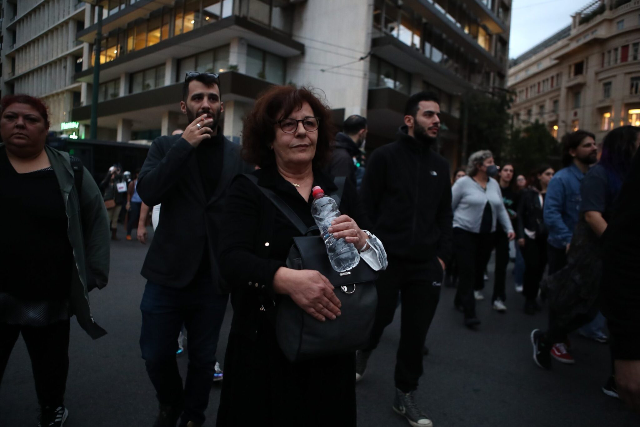 Μικρής έντασης επεισόδια σημειώθηκαν προηγουμένως στην περιοχή πίσω από την πλατεία Κλαυθμώνος στο κέντρο της Αθήνας, όταν ομάδα ατόμων επιτέθηκε σε διμοιρία των ΜΑΤ με μολότοφ, με την αστυνομία να απαντά με χειροβομβίδες κρότου λάμψης.