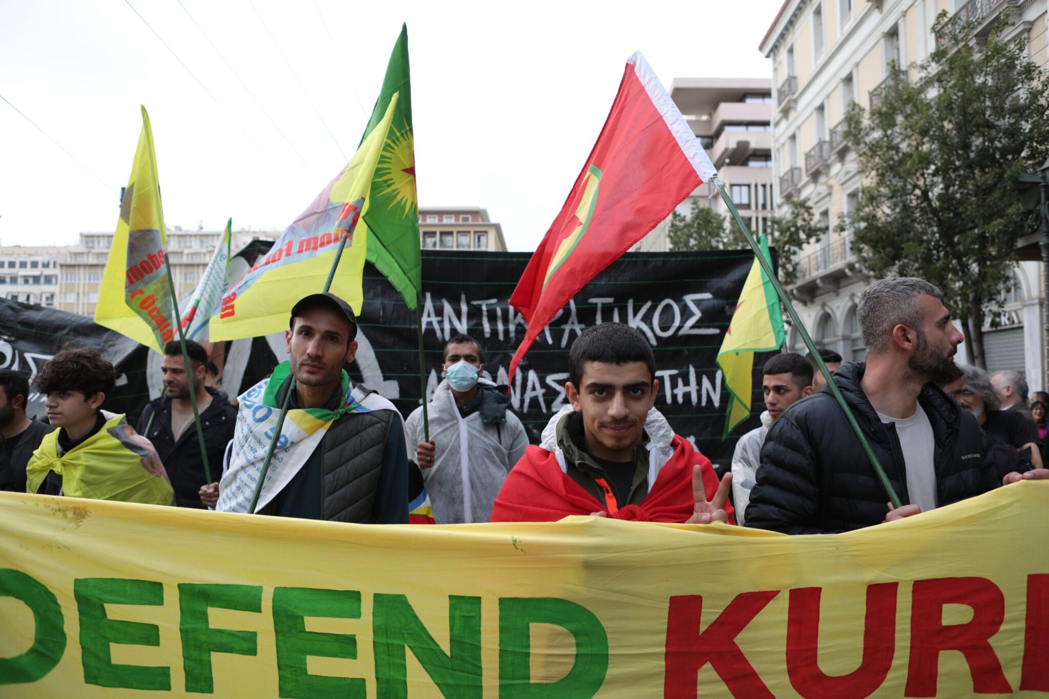Του συλλαλητηρίου προπορεύεται ο Σύνδεσμος Φυλακισθέντων Εξορισθέντων Αντιστασιακών 1967-1974 κρατώντας πανό με σύνθημα «Αντίσταση για πάντα στο φασισμό».