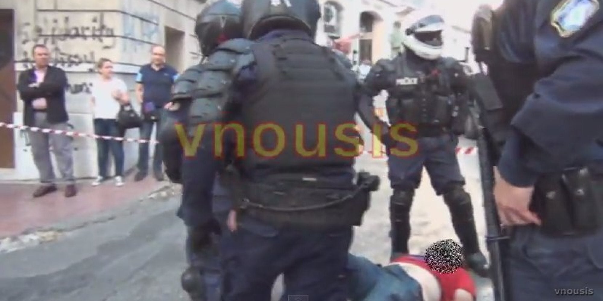 Στο βίντεο εμφανίζονται αστυνομικοί να πέφτουν πάνω του και να τον ακινητοποιούν. Μόνο που ο διαδηλωτής δεν σηκώθηκε ποτέ όρθιος. Οι άνδρες της ομάδας Δέλτα τον έσυραν για τουλάχιστον 100 μέτρα στην οδό Φιλελλήνων μέχρι που τον άφησαν πεσμένο στο οδόστρωμα για να δουν αν είναι καλά στην υγεία του.