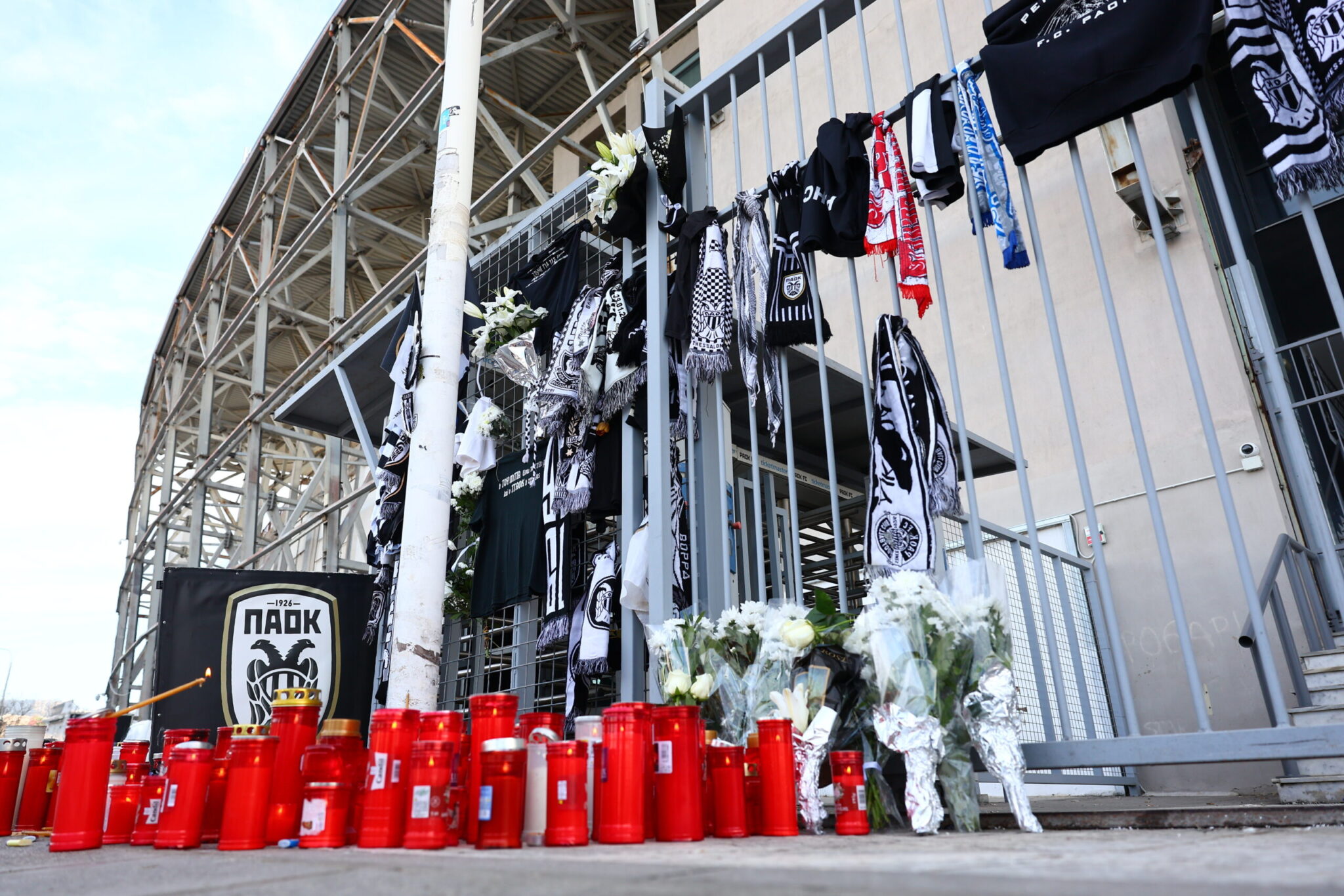 Η Θύρα 4 άνοιξε για να υποδεχθεί τον κόσμο της. Οπαδοί του Δικεφάλου, αλλά και απλοί πολίτες, άνθρωποι κάθε ηλικίας, πέρασαν το πέταλο με σκυμμένο το κεφάλι. Άλλοι κρατούσαν λουλούδια, άλλοι κεριά, όλοι όμως κουβαλούσαν το ίδιο συναίσθημα: πόνο και ένα αναπάντητο «γιατί». Το πέταλο γέμισε με λουλούδια και κεριά στη μνήμη των αδικοχαμένων αετόπουλων.