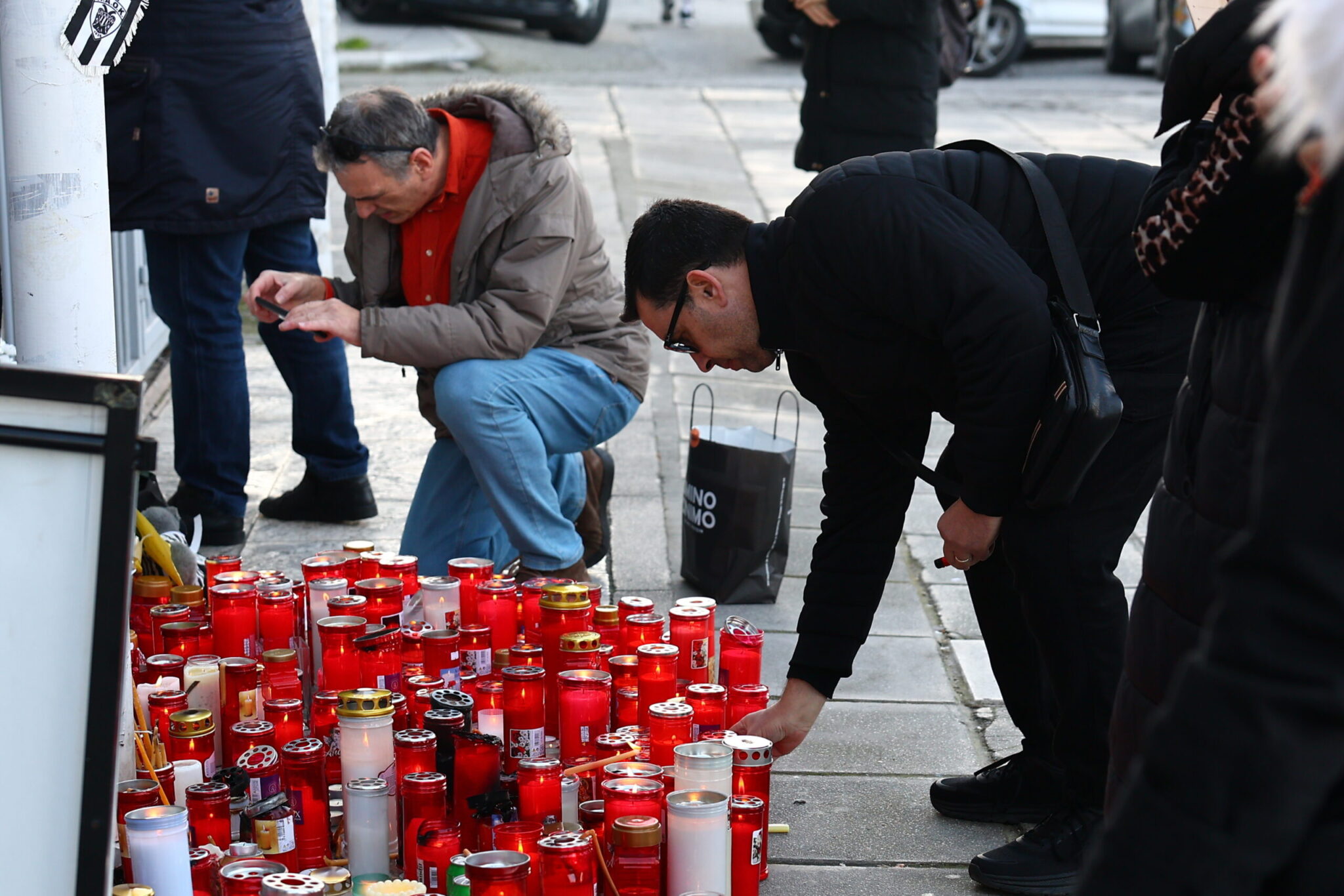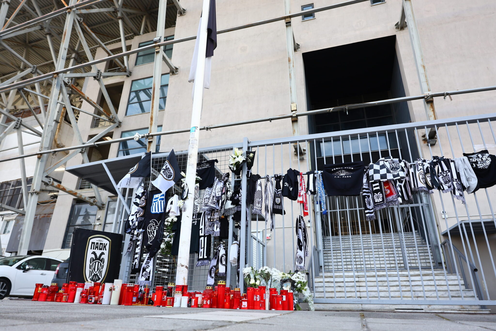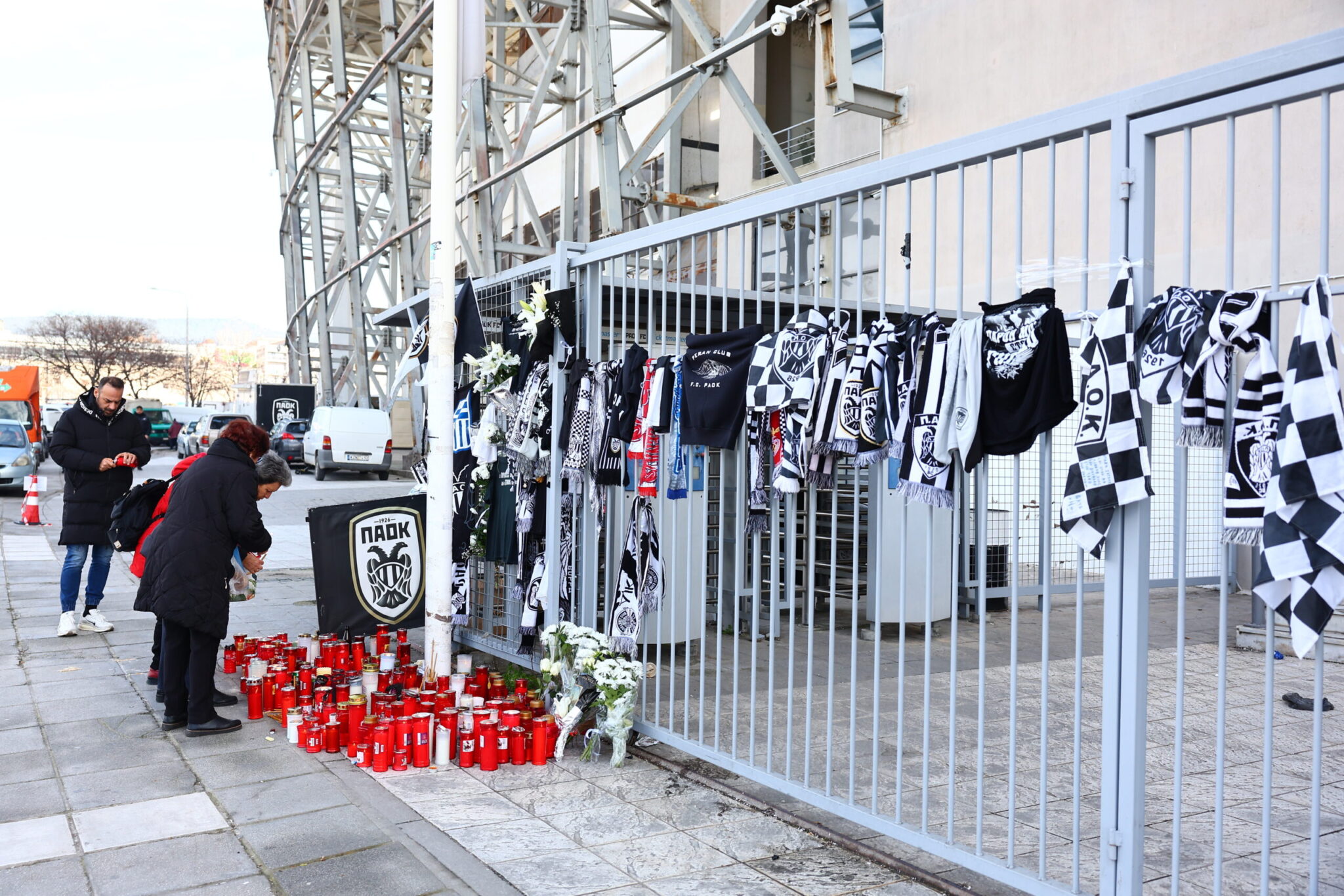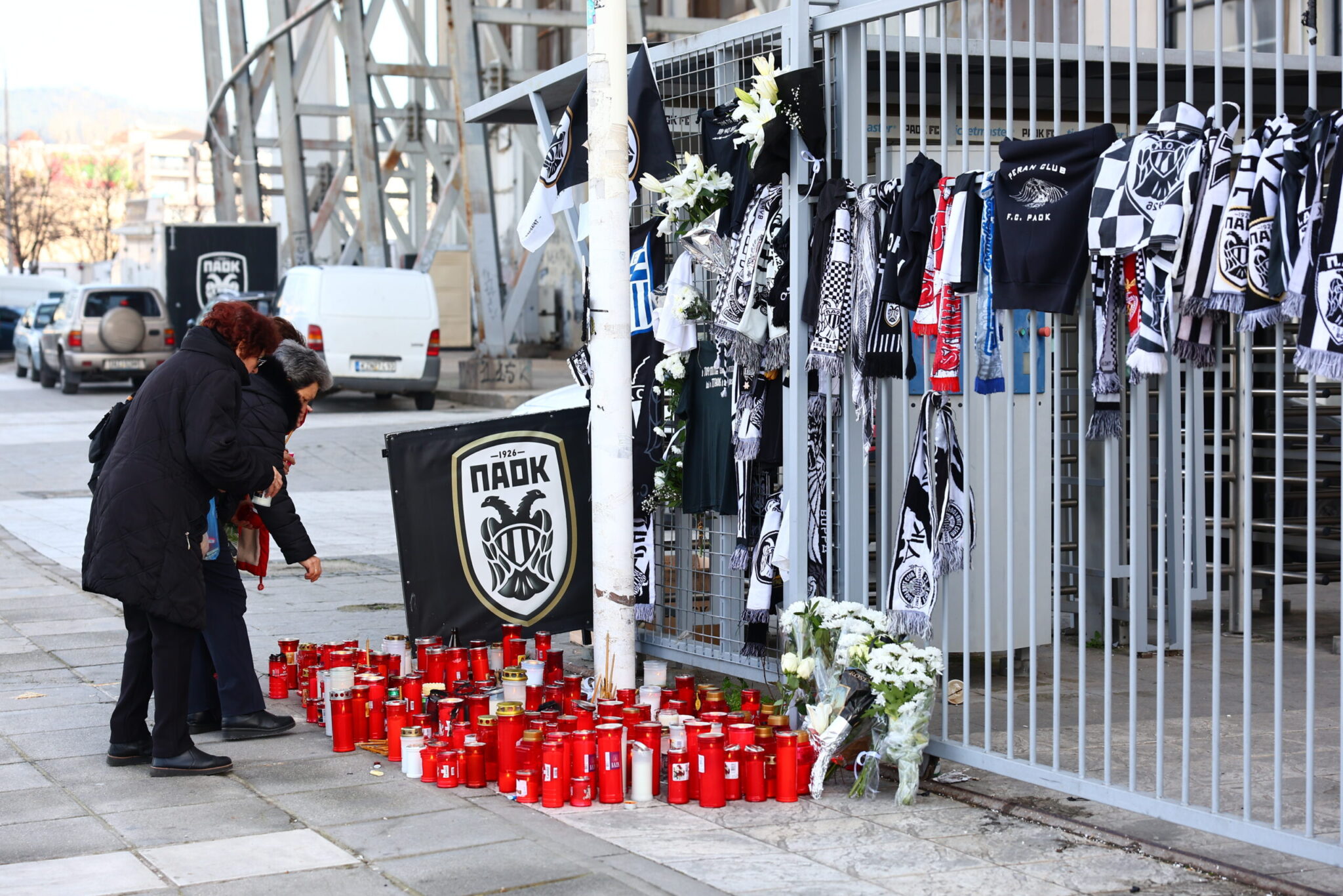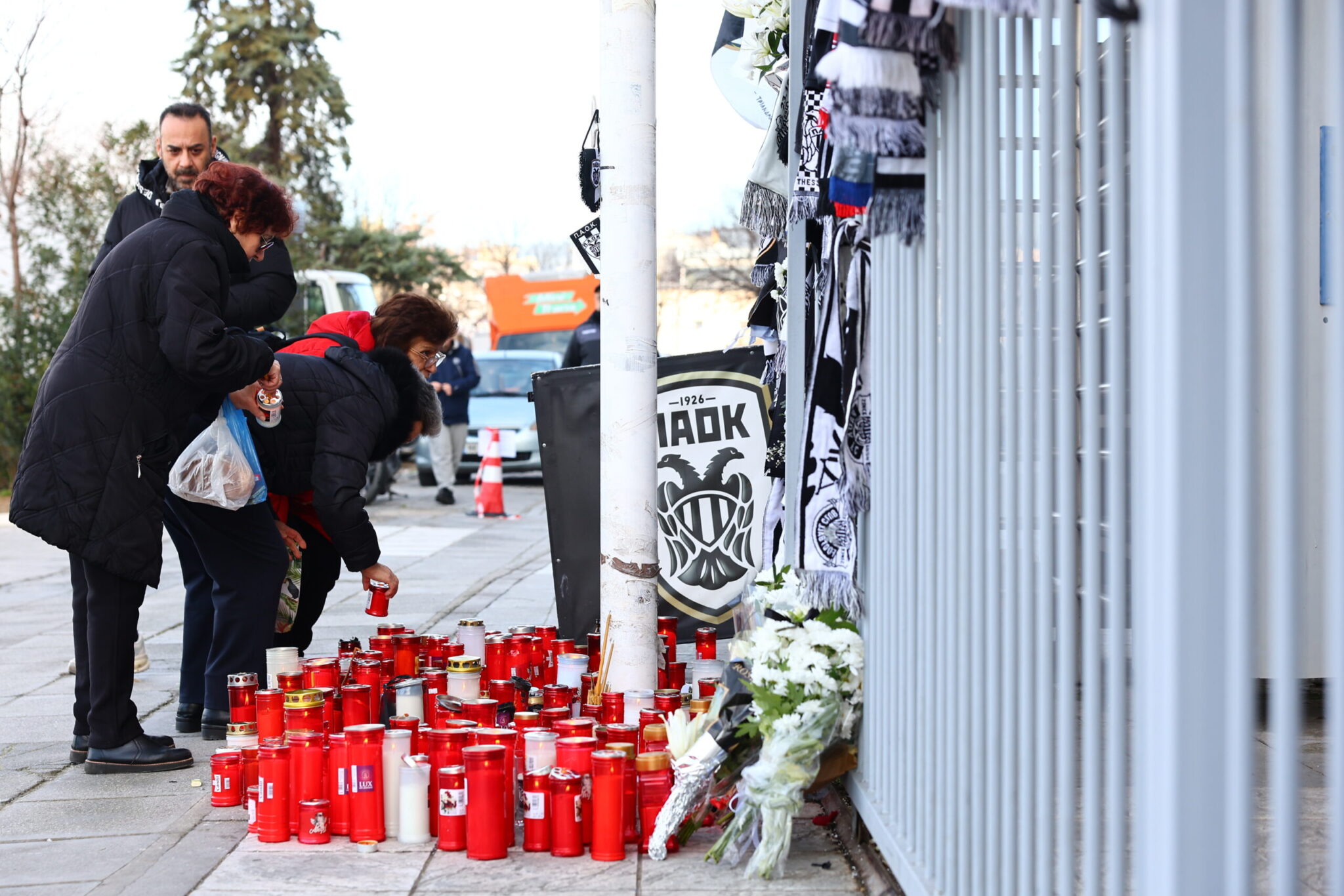 Η ίδια εικόνα εκτυλίσσεται και σήμερα. Από νωρίς το πρωί άνθρωποι όλων των ηλικιών σοκαρισμένοι από το δυστύχημα που στέρησε τη ζωή σε επτά ανθρώπους πηγαίνουν στο σημείο αφήνοντας κεριά, κασκόλ και σημαίες της ομάδας.