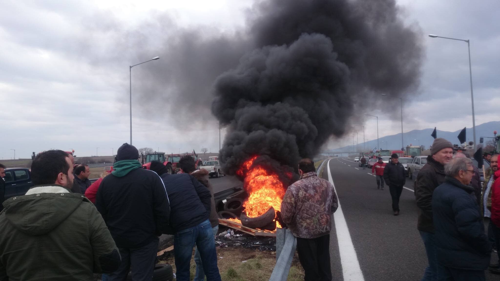 Αγρότες καίνε λάστιχα στην Εγνατία Οδό στο ύψος της Κομοτηνής