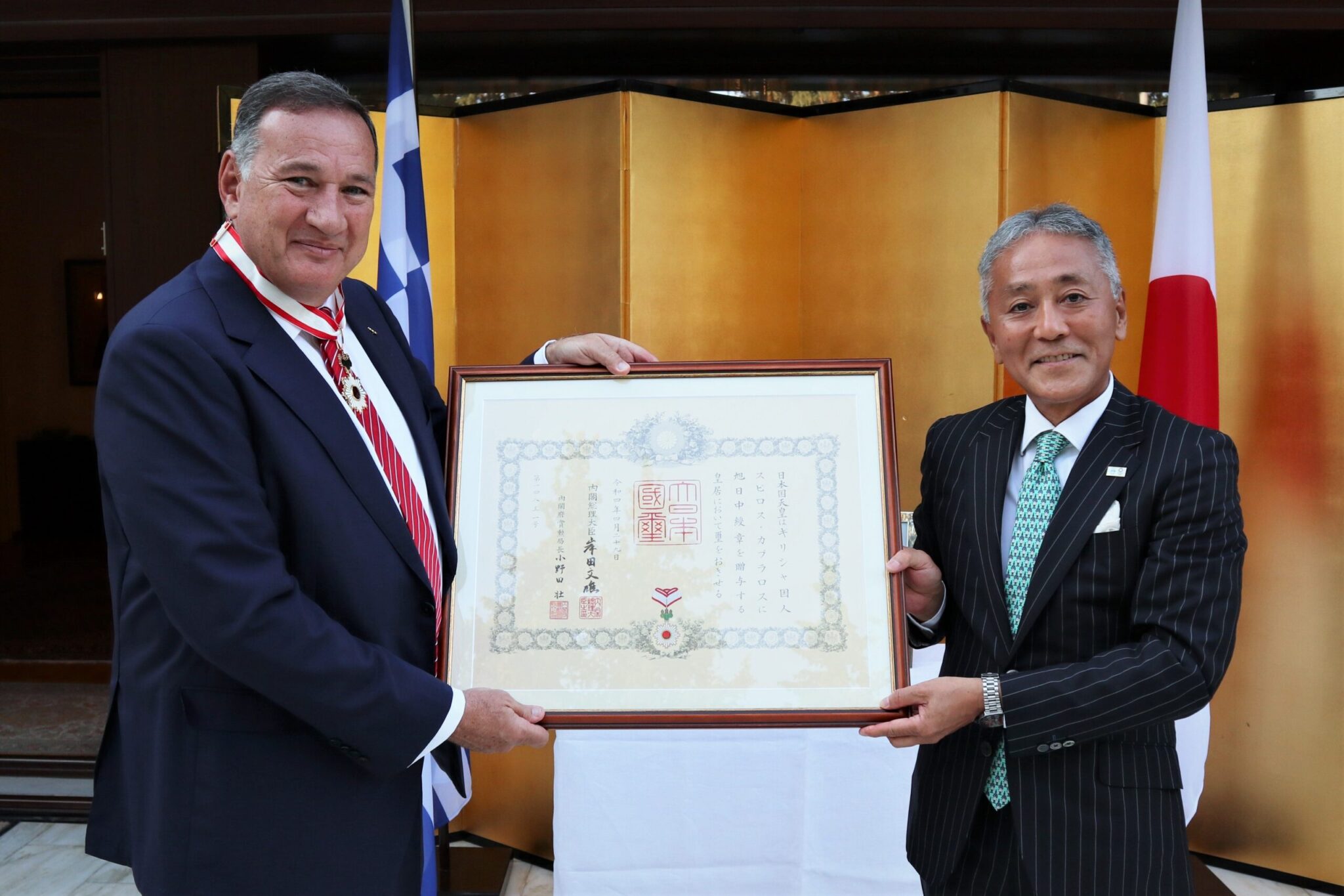Στον Πρόεδρο της Ελληνικής Ολυμπιακής Επιτροπής και μέλος της Διεθνούς Ολυμπιακής Επιτροπής Σπύρο Καπράλο, απονεμήθηκε μία από τις πιο σημαντικές διακρίσεις του ιαπωνικού κράτους σε εξέχουσες προσωπικότητες απ’ όλο τον κόσμο.