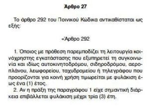 Πιο αναλυτικά όποιος από εδώ και στο εξής παρεμποδίζει τις συγκοινωνίες στις εθνικές οδούς, ή ακόμη και την παρεμπόδιση αμαξοστοιχιών, αεροπλάνων, λεωφορείων θα τιμωρείται με ποινή φυλάκισης ενός έτους, από τρεις μήνες που ίσχυε μέχρι και σήμερα.