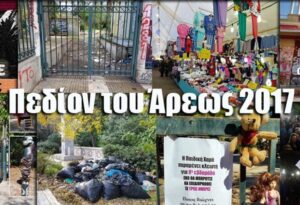 Μέσα στο 2017 δεν αποκαταστάθηκε ούτε μία λειτουργία του Πεδίου του Άρεως. Οι διαδρομές του παρέμειναν γεμάτες κακοτεχνίες για παιδιά και μεγάλους, το πότισμα και η περιποίησητου Πάρκου (τουλάχιστον μέχρι τον Σεπτέμβριο) ήταν από απαράδεκτα μέχρι καταστροφικά, οι υδάτινες διαδρομές και τα σιντριβάνια δεν λειτούργησαν, τα περίπτερα παρέμειναν κλειστά, όπως και το «Άλσος Οικονομίδη» και οι τουαλέτες…