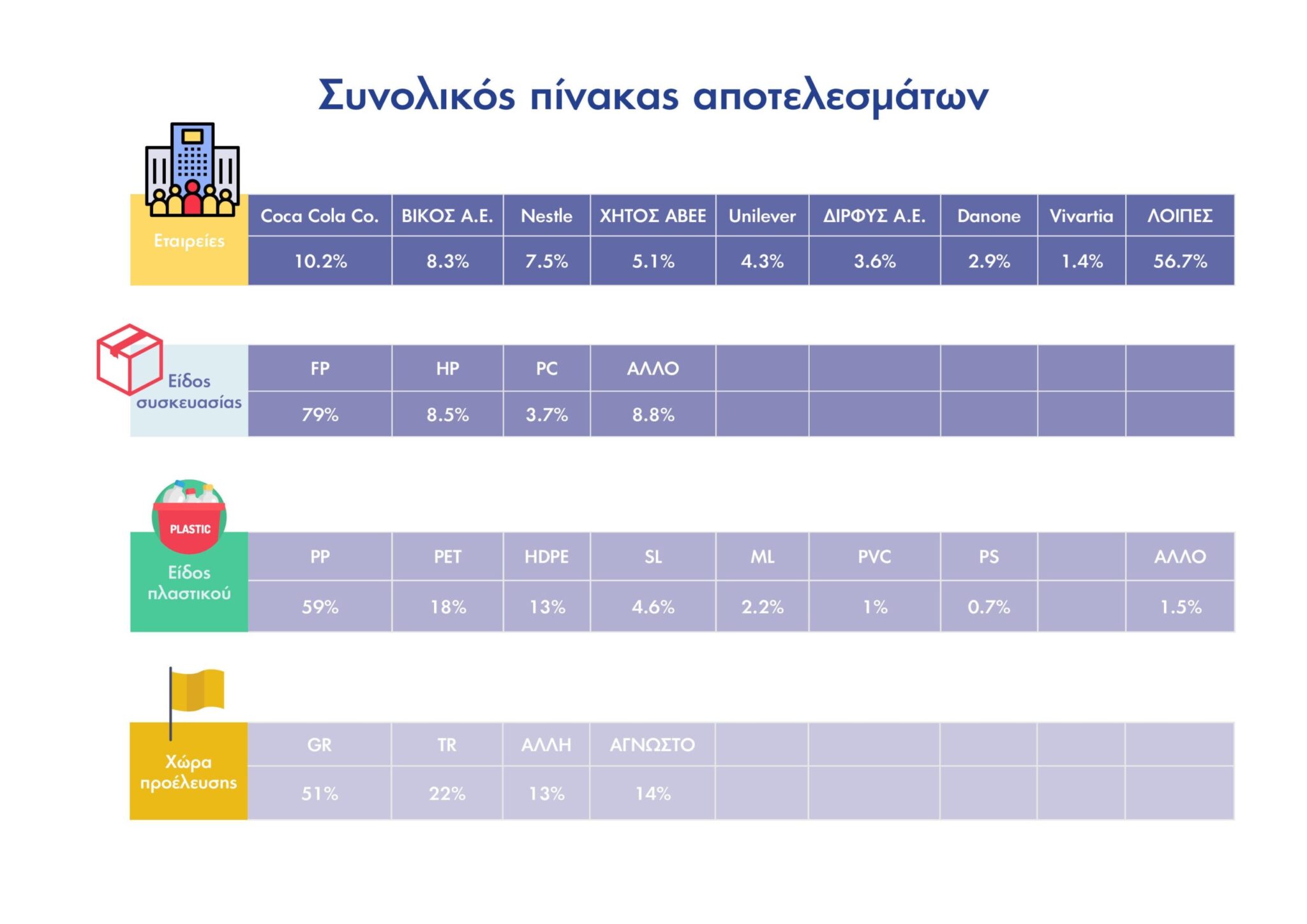 Η ολοκληρωμένη καταγραφή της ταυτότητας των χιλιάδων πλαστικών μίας χρήσης που συλλέχθησαν ανέδειξε τις εταιρείες που είχαν τα περισσότερα πλαστικά απορρίμματα στην παραλία του Χάρακα. Χωρίς τη συμβολή αυτών, αλλά και όλων των μεγάλων εταιρειών, δεν θα μπορέσουμε να αντιμετωπίσουμε αποτελεσματικά την πλαστική σπατάλη και ρύπανση.