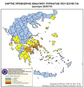 Δείτε το χάρτη πρόβλεψης κινδύνου για πυρκαγιά της Πολιτικής Προστασίας.