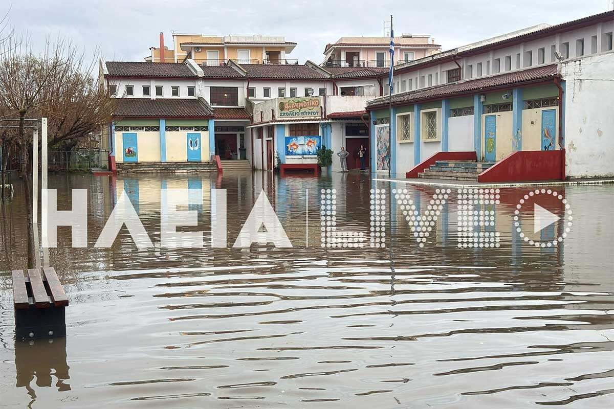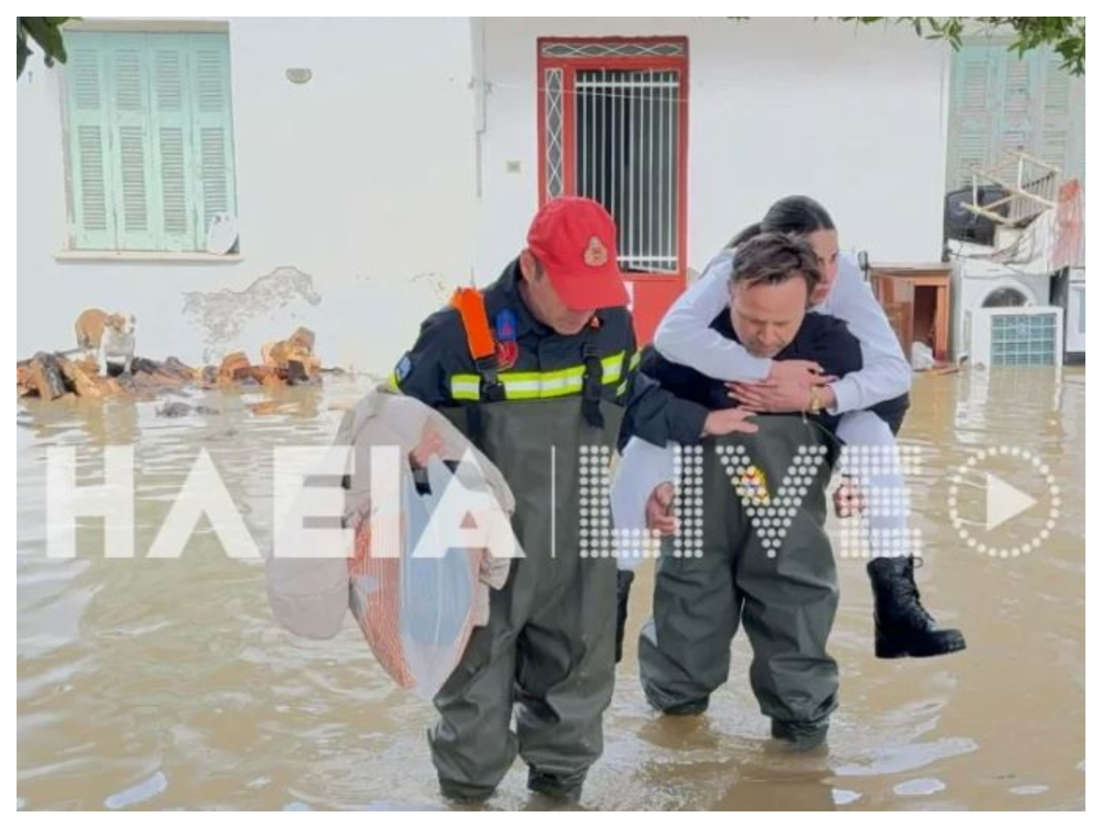 Πλημμύρισαν σπίτια στον Πύργο – Πυροσβέστες κουβαλούν στα χέρια κατοίκους