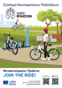 • Προμήθεια, εγκατάσταση, παραμετροποίηση και λειτουργία ολοκληρωμένου συστήματος μίσθωσης κοινόχρηστων ηλεκτρικών ποδηλάτων.