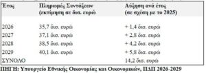 Σύμφωνα και με όσα αναφέρονται στο Πολυετές Δημοσιονομικό Πρόγραμμα 2026-2029: