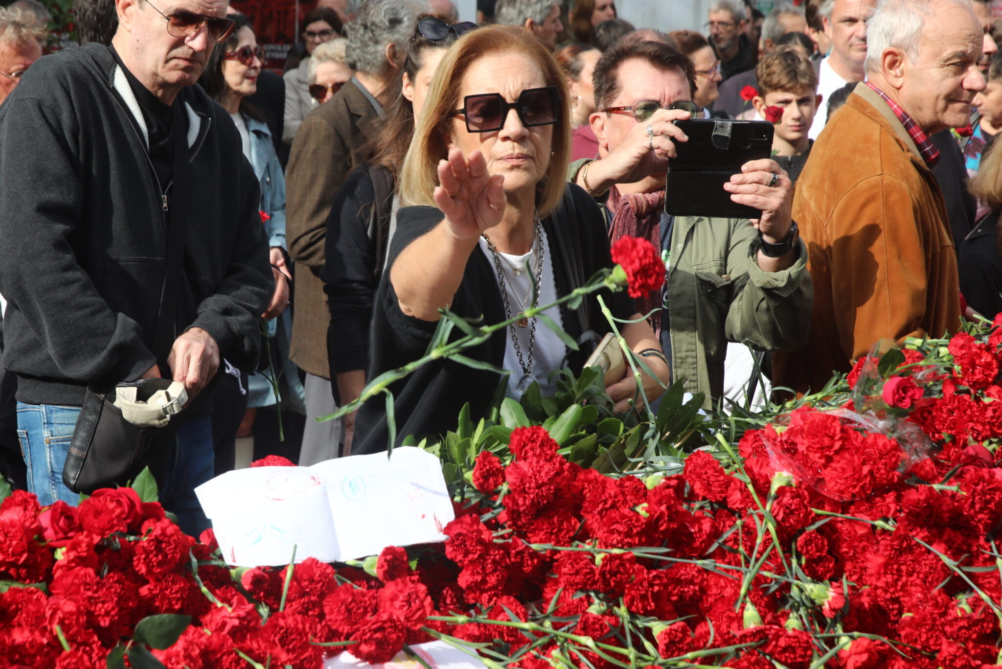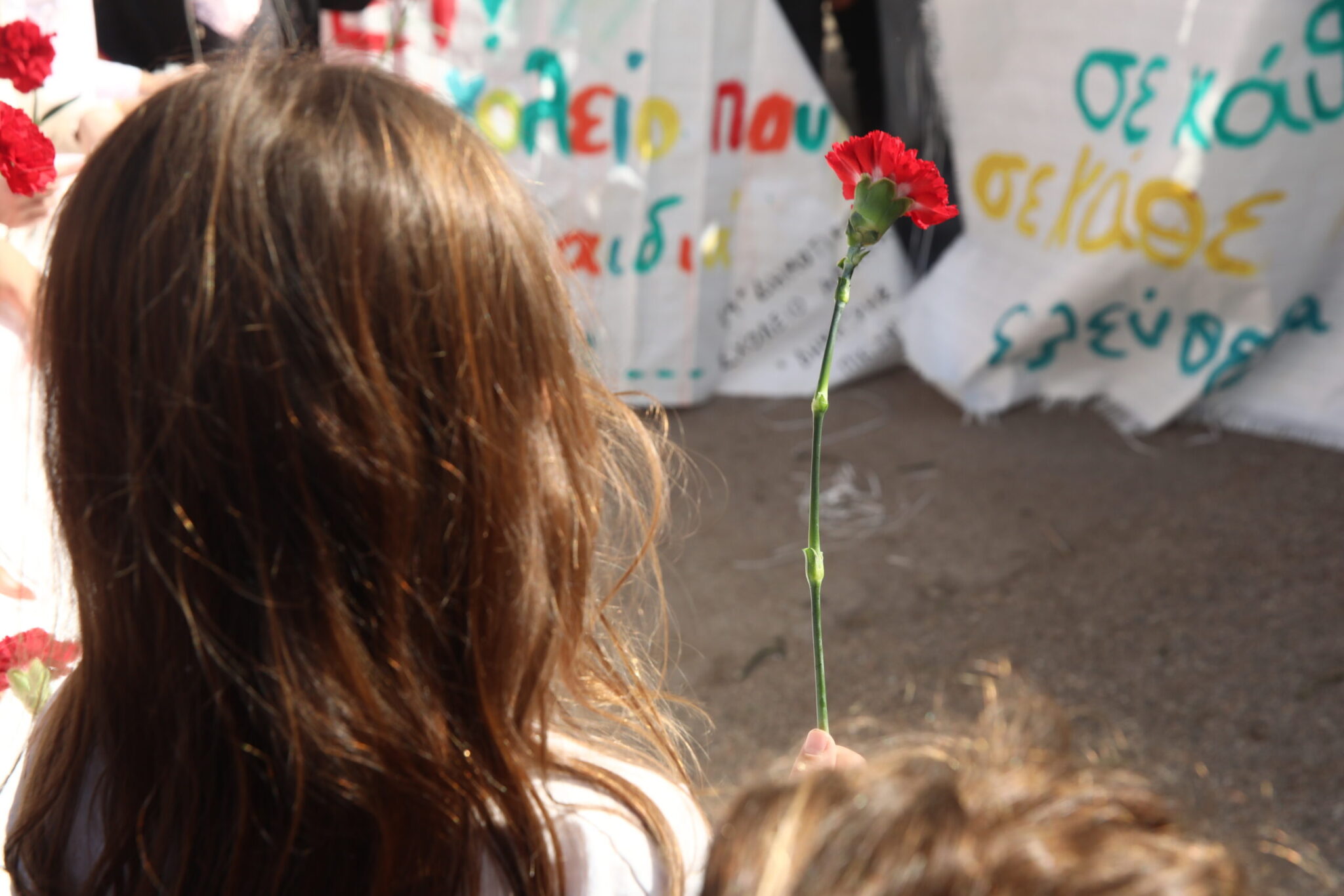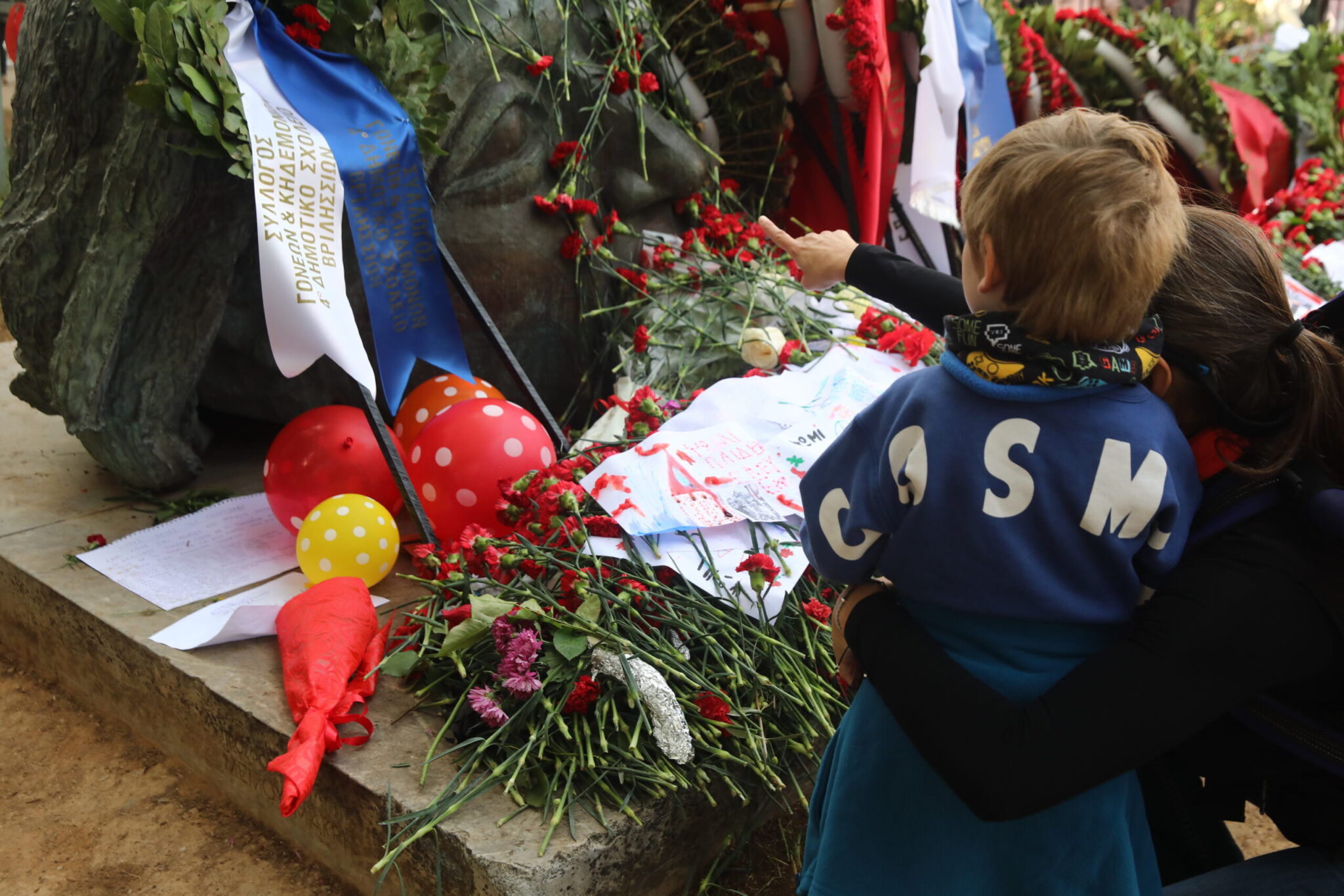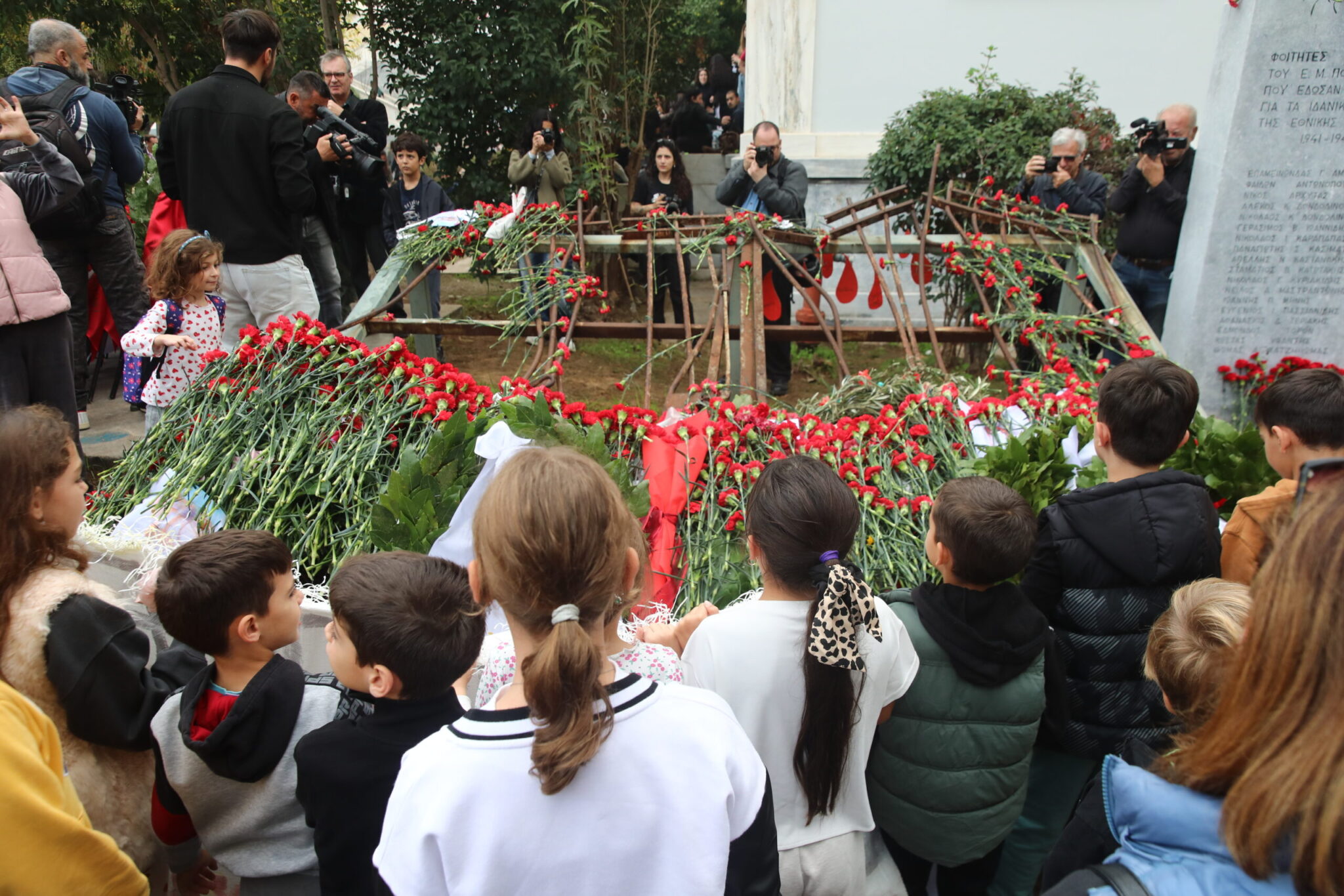 Από τις πύλες του Πολυτεχνείου, που άνοιξαν στις 09:00 για να κλείσουν στις 13:00, πέρασαν πολίτες κάθε ηλικίας αφήνοντας στο μνημείο των θυμάτων της εξέγερσης κόκκινα γαρύφαλλα, μηνύματα αλλά και ζωγραφιές που κρατούσαν μικροί μαθητές.