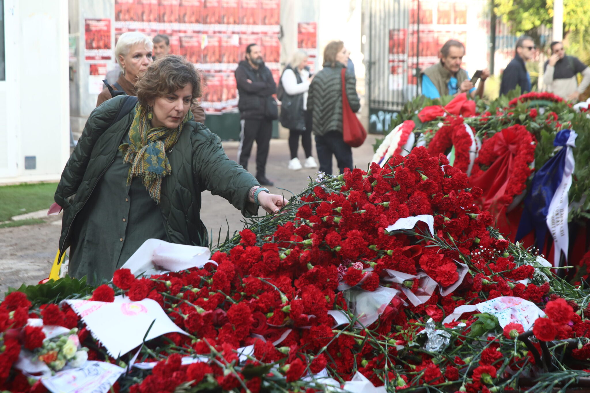 Με ένα λουλούδι στο χέρι εκατοντάδες άνθρωποι επισκέπτονταν από το πρωί της Δευτέρας (17/11) το προαύλιο του Πολυτεχνείου, αποτίνοντας φόρο τιμής στους αγωιστέ της 17ης Νοεμβρίου.