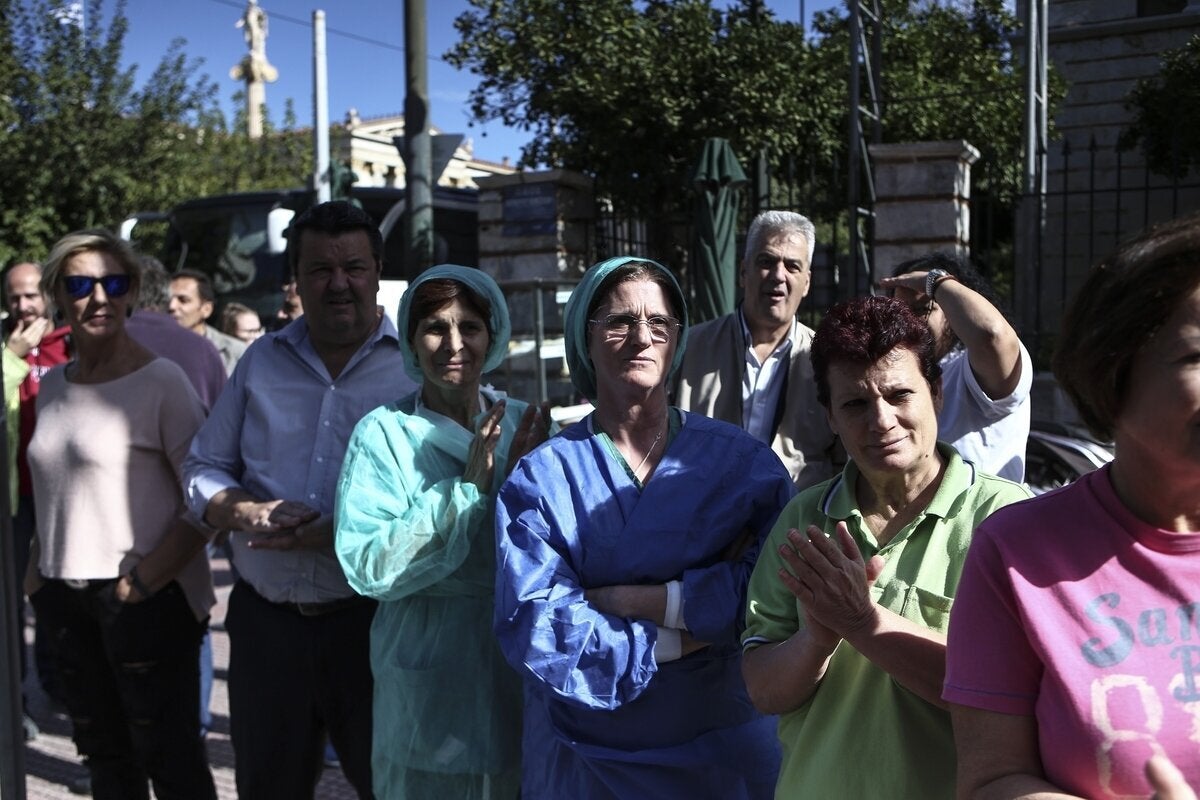 Με οικονομικά και θεσμικά αιτήματα αλλά και για το ζήτημα της αξιολόγησης, ενάντια στην οποία αντιδρούν, εργαζόμενοι στα νοσηλευτικά ιδρύματα συγκεντρώθηκαν το πρωί έξω από τα νοσοκομεία Παίδων, στο πλαίσιο στάσης εργασίας από τις 8.00 π.μ. έως τη 1.00 μ.μ. που έχει προκηρύξει η ΠΟΕΔΗΝ. Με συνθήματα κατά της κυβέρνησης και το «άρμα του Μαυρογιαλούρου πρωθυπουργού» πραγματοποίησαν πορεία μέσω των οδών Βασ. Σοφίας, Πανεπιστημίου και κατέληξαν στο υπουργείο Υγείας.