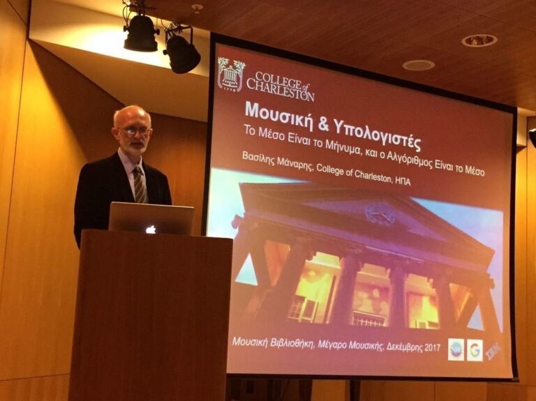 Μια διάλεξη για τις παιδαγωγικές καινοτομίες στην σύνθεση τέχνης και επιστήμης που γίνονται αυτή την εποχή στη δευτεροβάθμια και πανεπιστημιακή εκπαίδευση στις Ηνωμένες Πολιτείες έδωσε στο Μέγαρο Μουσικής ο κ. Βασίλης Μάναρης, καθηγητής της Επιστήμης των Υπολογιστών και διευθυντής του πτυχιακού προγράμματος Computing in the Arts, στο Πανεπιστήμιο του Τσάρλεστον.