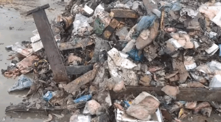 Την παράνομη μεταφορά των αποβλήτων, έφερε στη δημοσιότητα η ΕΡΤ, μέσω αποκλειστικού βίντεο στο οποίο φαίνονται εκσκαφείς να ανοίγουν τις τάφρους και να θάβουν μέσα ψάρια, κοτόπουλα και χαλασμένα κρέατα.