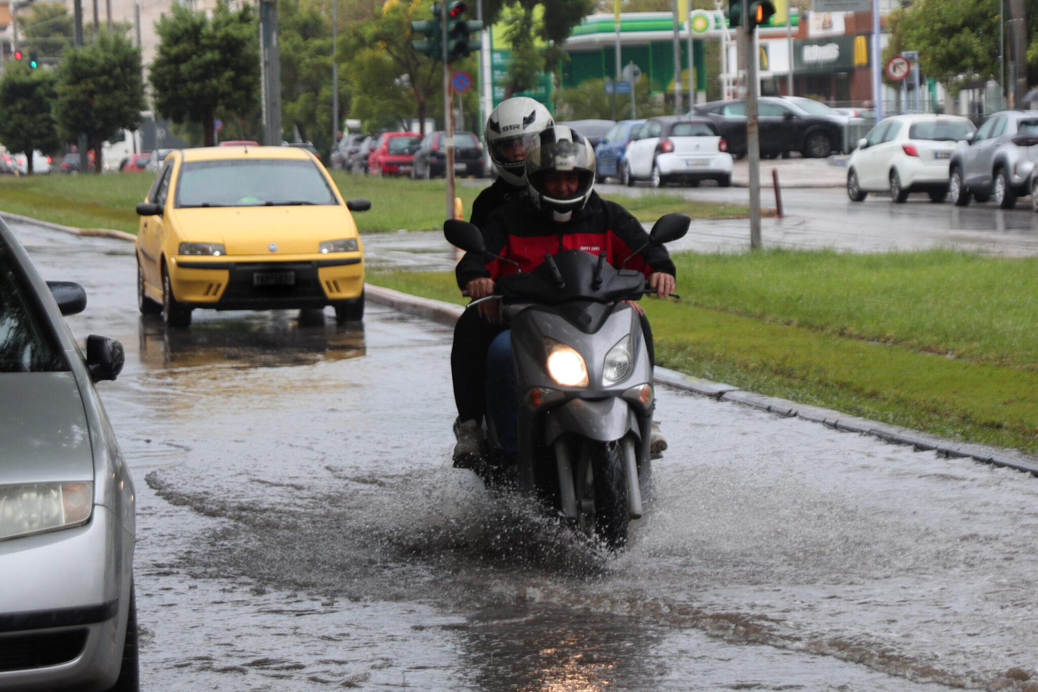 Προσοχή και στους δικυκλιστές, γιατί κουράζονται και βρέχονται πολύ περισσότερο από τους υπόλοιπους οδηγούς. Αναγκαστικά, ξεσκόνισαν τα αδιάβροχα παντελόνια και μπουφάν τους, που ξεπλύθηκαν ήδη στη βροχή, ενώ αντίστοιχα οι πεζοί άνοιξαν για πρώτη φορά μετά το καλοκαίρι ομπρέλες και φόρεσαν κουκούλες για να προστατευθούν.
