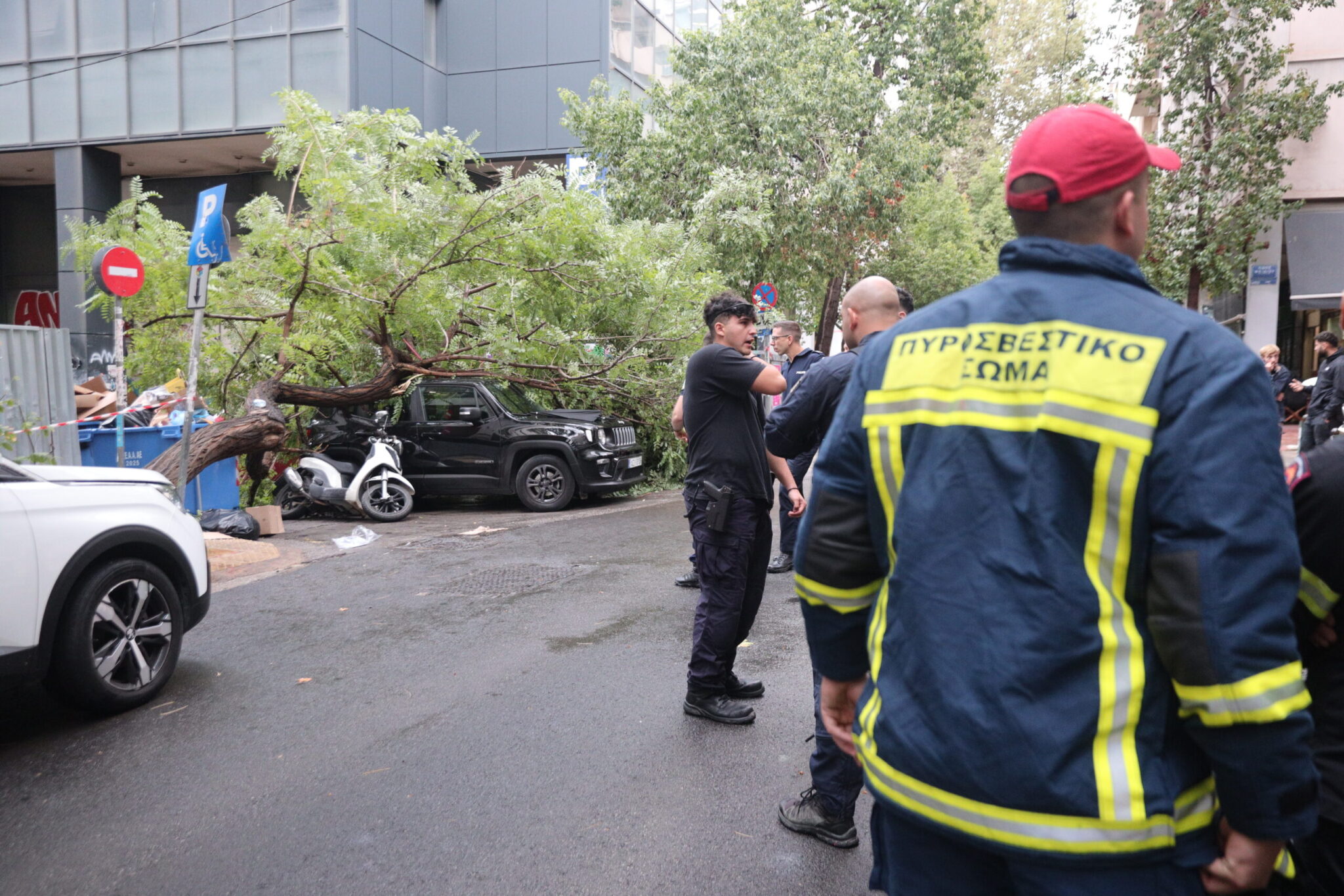 Ένα δέντρο ξεριζώθηκε στο κέντρο της Αθήνας και προσγειώθηκε πάνω σε διερχόμενο οδηγό μοτοσικλέτας, ο οποίος τραυματίστηκε και χρειάστηκε να μεταφερθεί στο νοσοκομείο.
