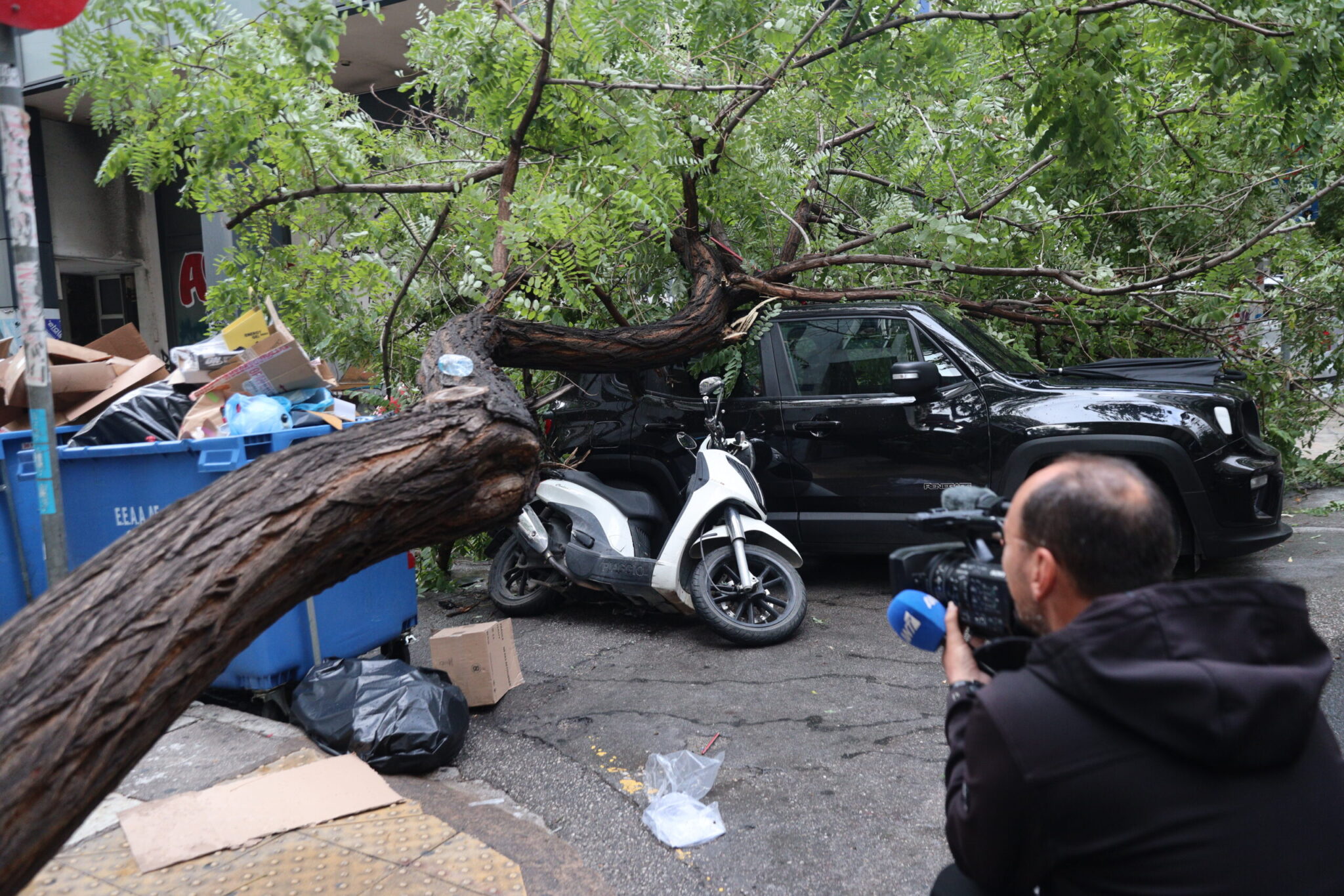 Ένα δέντρο ξεριζώθηκε στο κέντρο της Αθήνας και προσγειώθηκε πάνω σε διερχόμενο οδηγό μοτοσικλέτας, ο οποίος τραυματίστηκε και χρειάστηκε να μεταφερθεί στο νοσοκομείο.