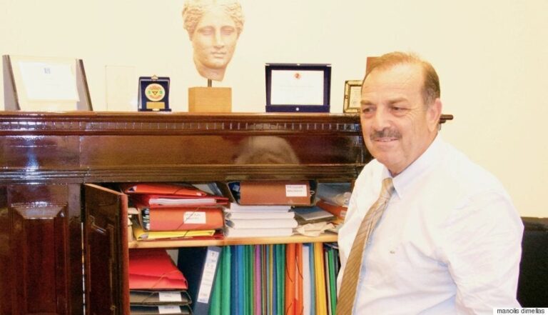 Στο ευρύχωρο γραφείο του ξεχωρίζει μια κλειστή ντουλάπα, στο άνοιγμα της ξεχωρίζουν πολύχρωμοι μεγάλοι και μικροί φάκελοι, που στέκουν στη σειρά σαν τα στρατιωτάκια!